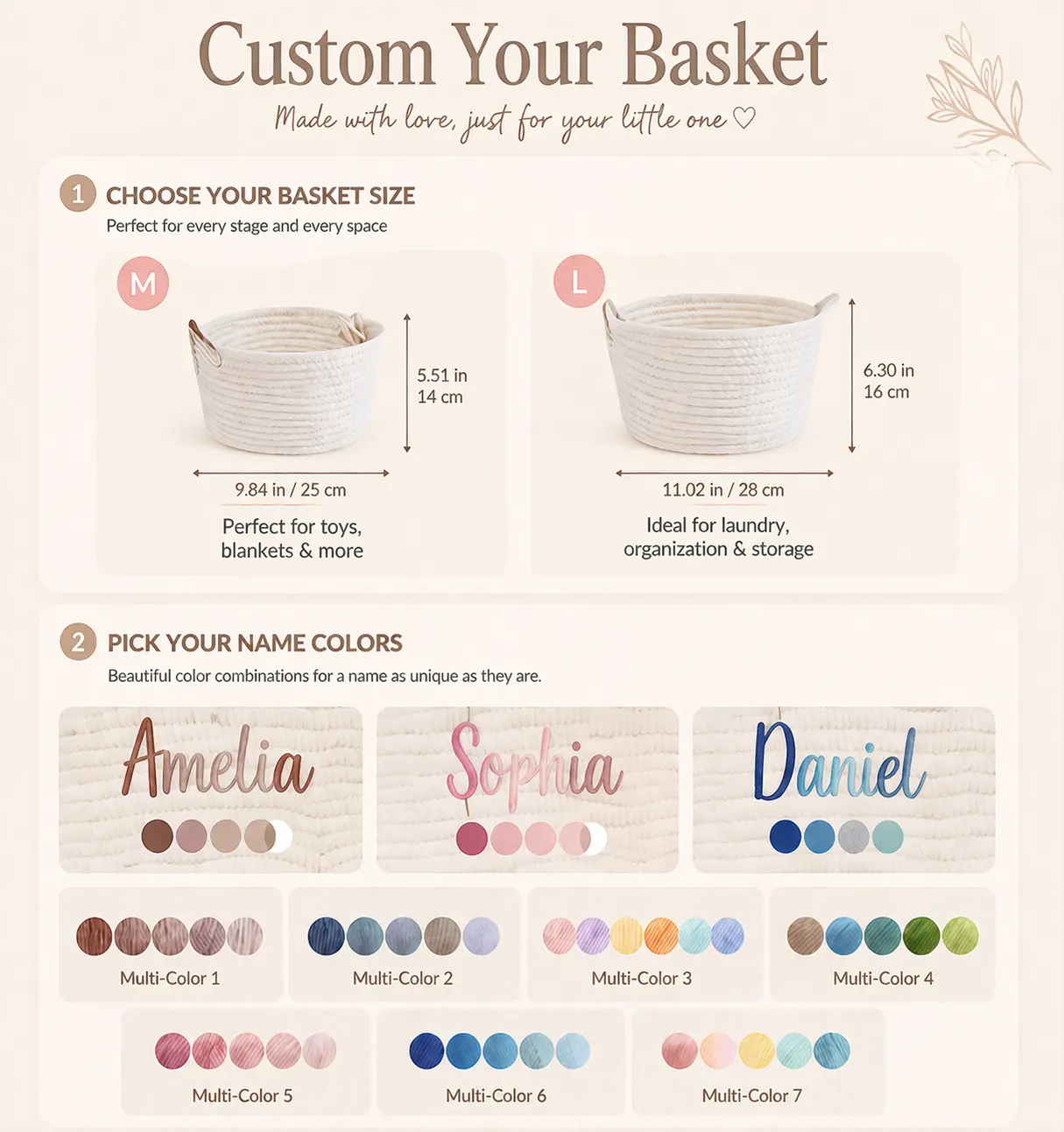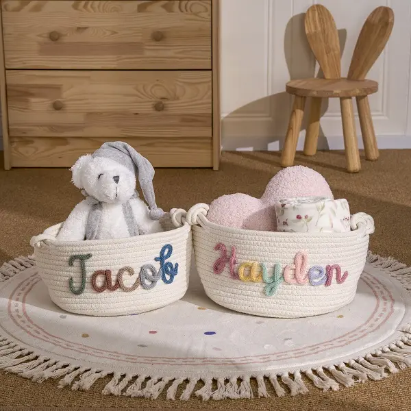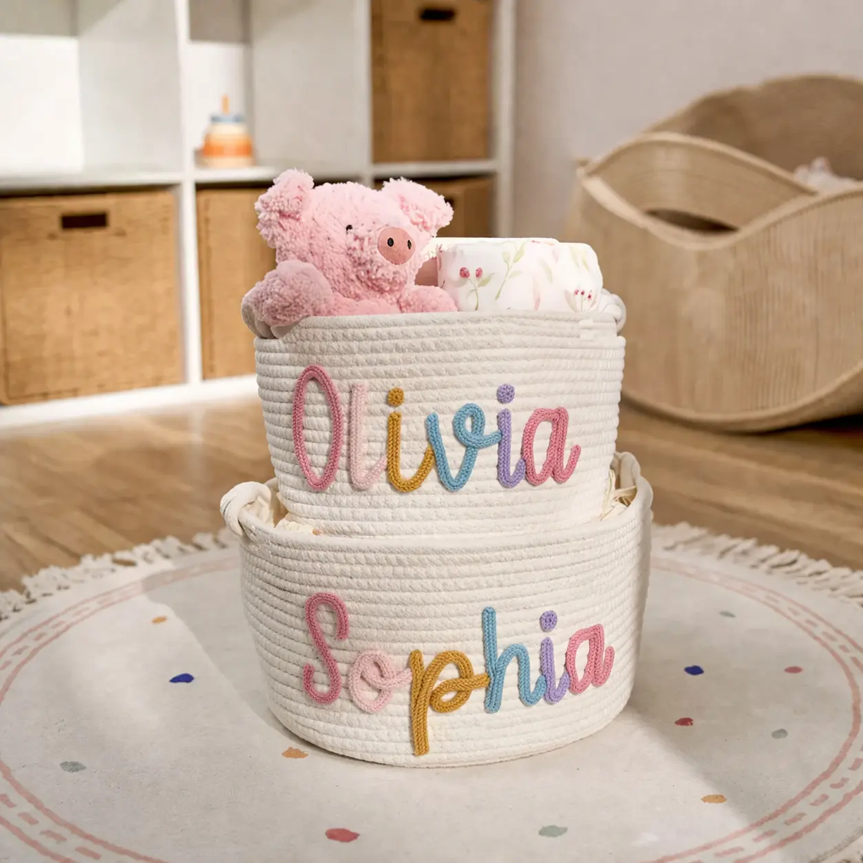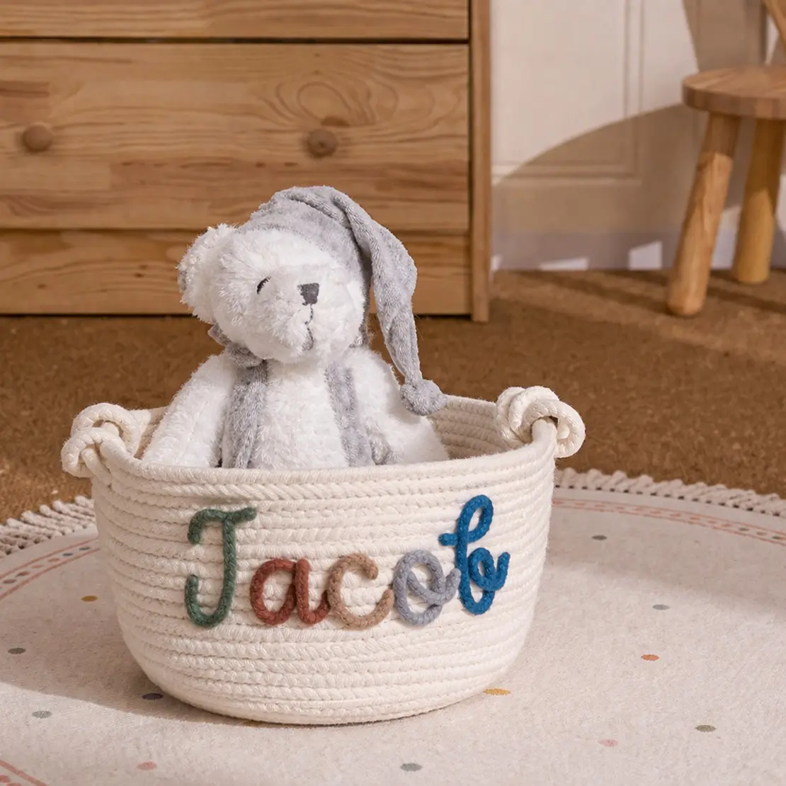 Personalized Handmade Basket for Baby Shower Gift Toy Organizer I-Cord Knitting Craft Customizable Name Design