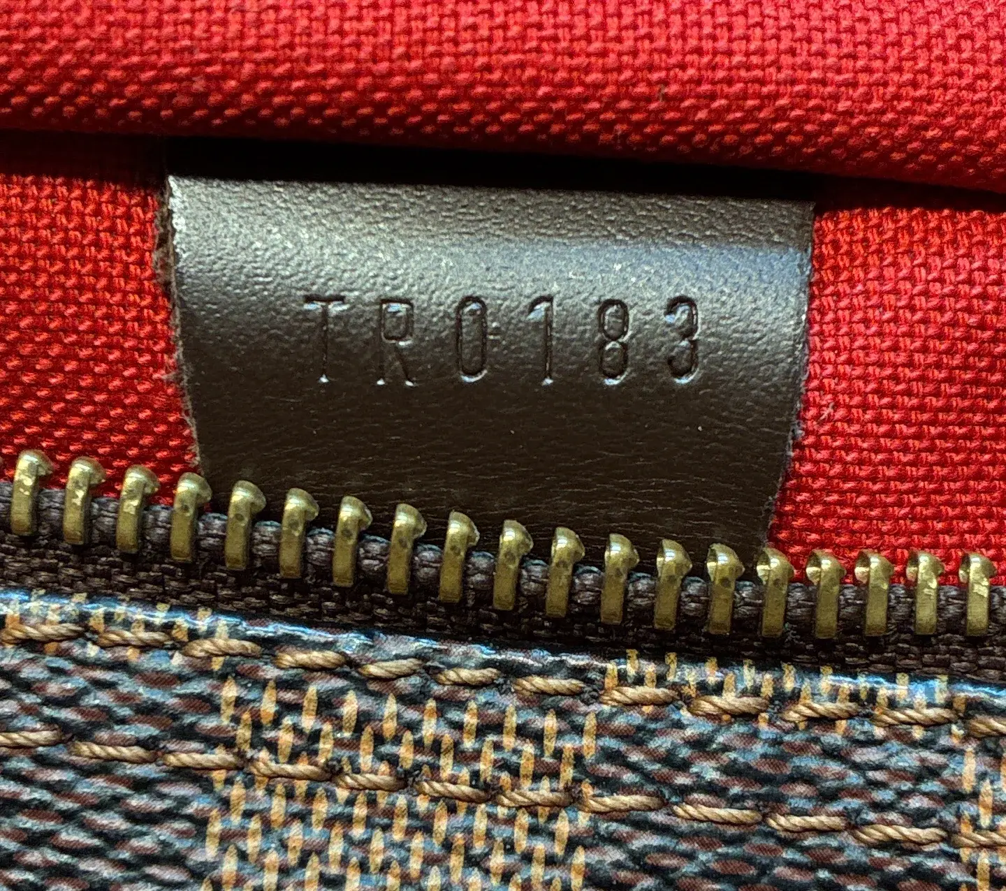 These are professional pictures of the actual item offered by Rebag. Condition: Good. Exterior: heavy corner wear, scuffs, edge wear, minor creases | Handles/Straps: scuffs, discoloration, minor cracking | Interior: scuffs, discoloration, perfume odor | Hardware: scratches, minor tarnished Accessories: Lock Measurements: Handle Drop 3", Height 8", Width 9.5", Depth 6", Strap Drop 21-24" Designer: Louis Vuitton Model: Speedy Handbag Damier 25 Exterior Material: Canvas Coated Exterior Color: Brown Interior Material: Fabric Interior Color: Red Hardware Color: Gold Brand Code: TR0183 Item Number: 402214/1