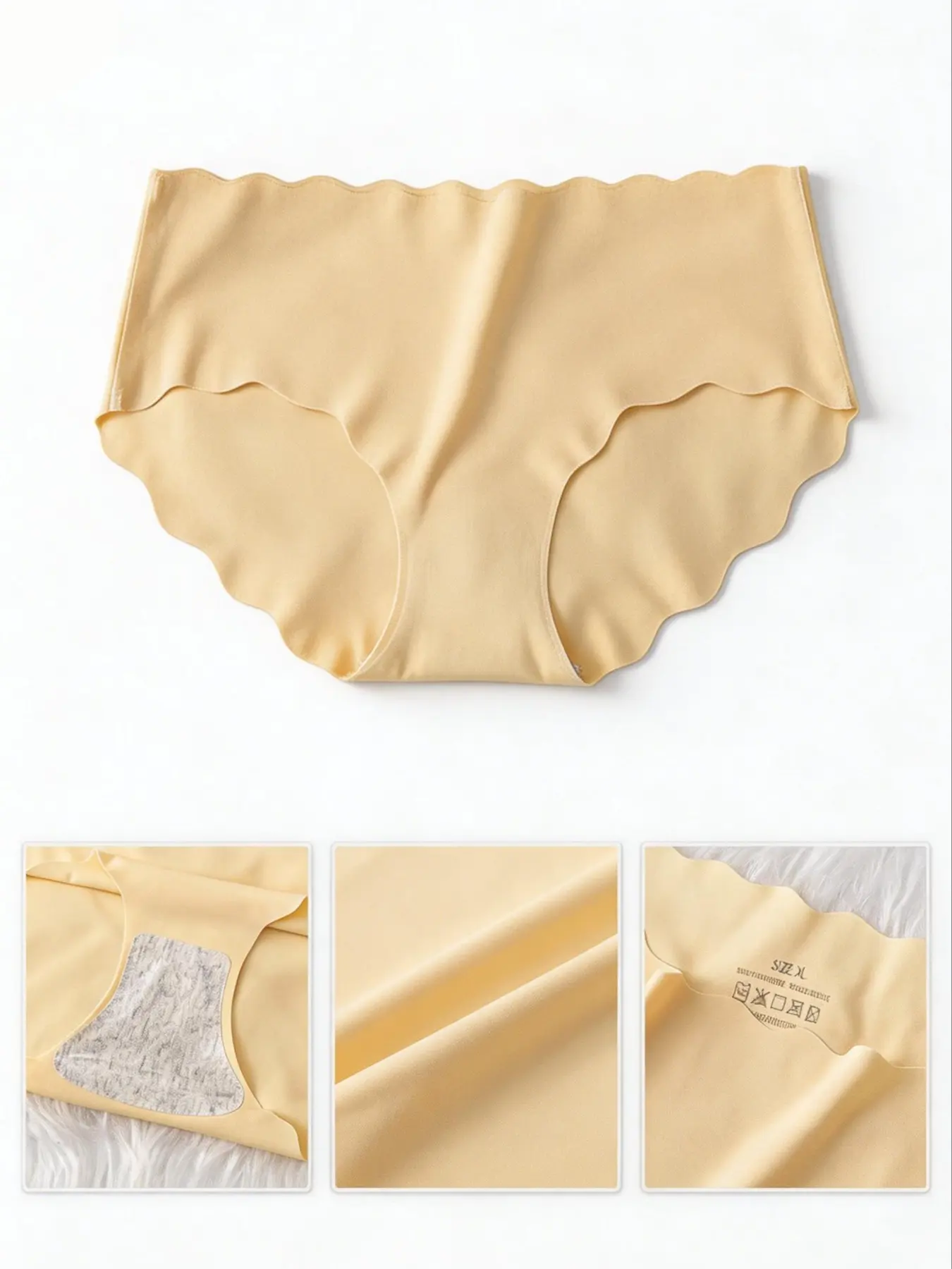 7-Pack Women's Solid Color Seamless Silk Panties, Ruffle Hem Invisible Soft Intimates, Sexy Comfort Underwear
