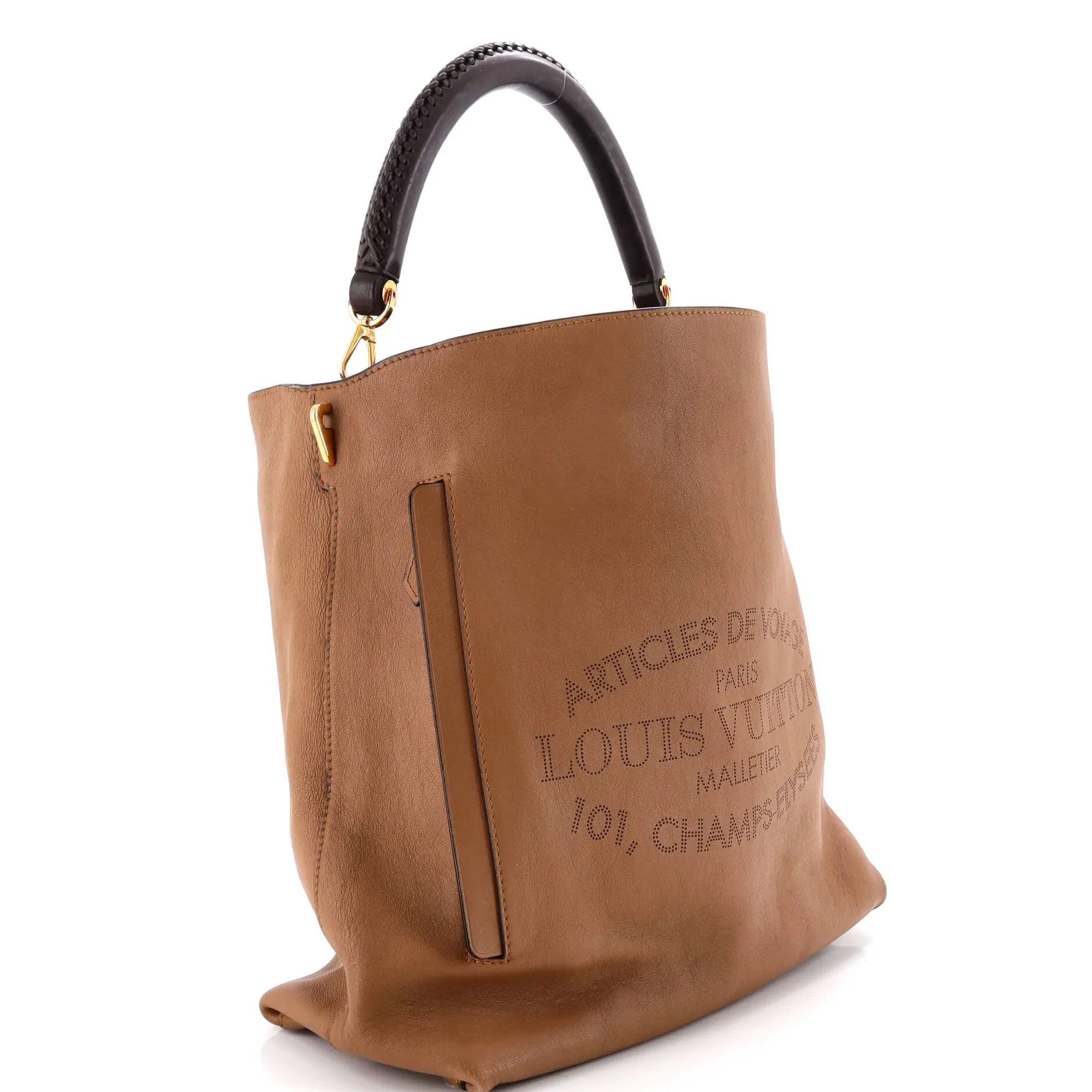 These are professional pictures of the actual item offered by Rebag. Condition: Good. Exterior: heavy corner wear, edge wear, scuffs, cracking, minor creases | Handles/Straps: scuffs, discoloration, minor cracking | Interior: discoloration, stains, scuffs, light odor | Hardware: scratches, tarnished Accessories: No Accessories Measurements: Handle Drop 3.5", Height 14", Width 13", Depth 5.5", Strap Drop 13.5" Designer: Louis Vuitton Model: Voyage Bagatelle Hobo Leather Exterior Material: Leather Exterior Color: Brown Interior Material: Microfiber Interior Color: Brown Hardware Color: Gold Brand Code: AH0184 Item Number: 405118/1