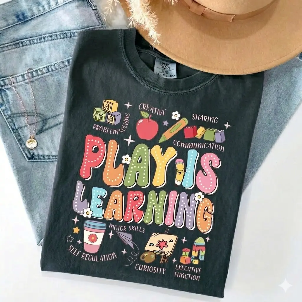 Comfort Colors Play Is Learning T-Shirt, Preschool Teacher Graphic Tee, Early Childhood Education Shirt Gift, Cute Classroom Style