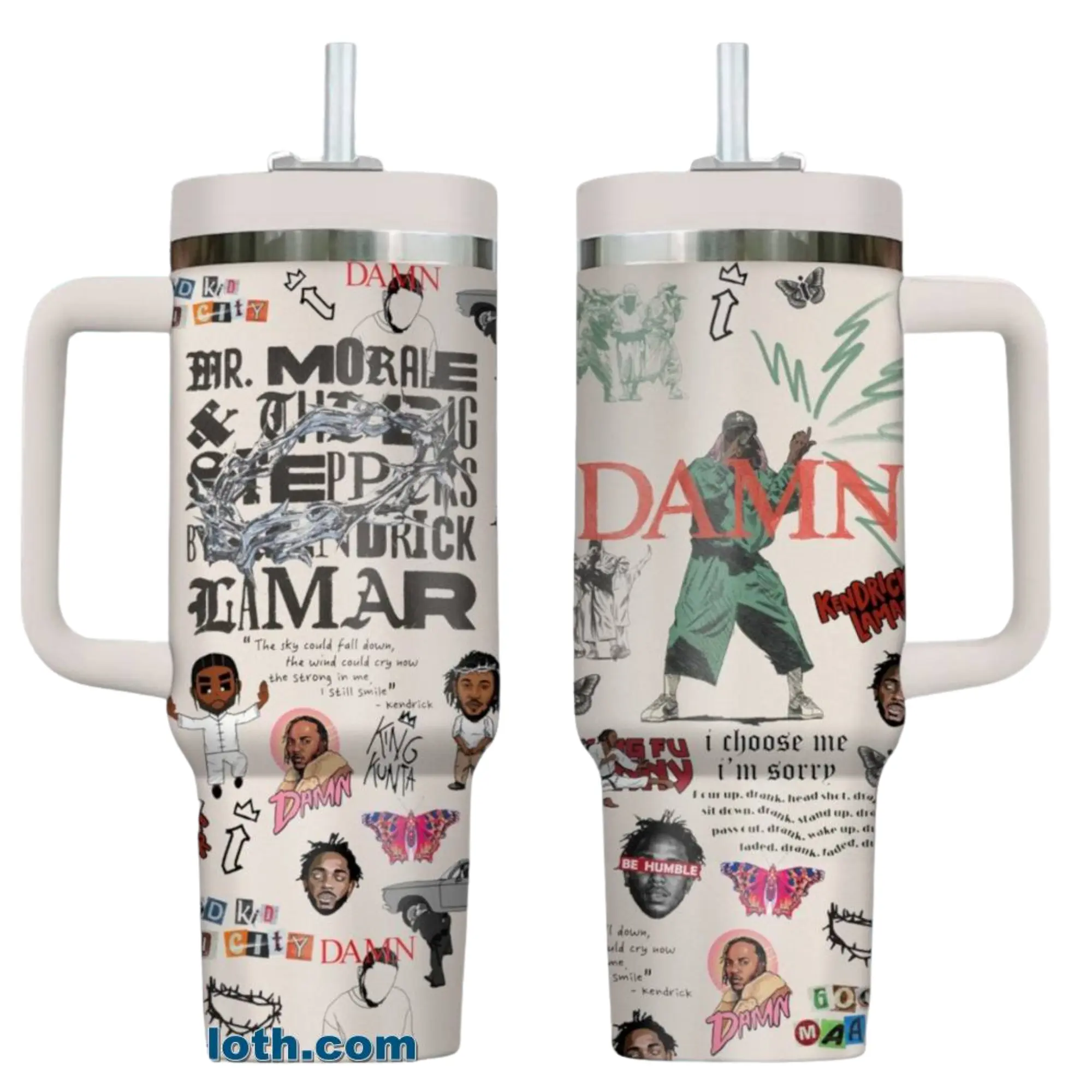 Rapper Lamar Tumbler 40oz Rap Fan Bow Cup with Handle Travel Mug Gift For Him or Her