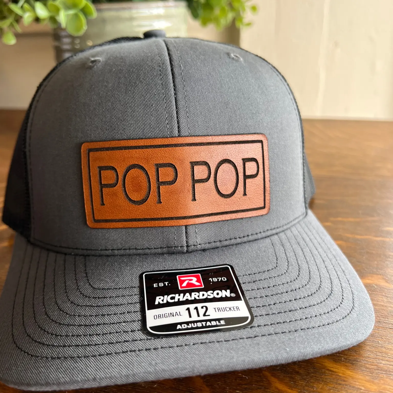 Pop Pop Hat, Leather Patch Trucker Cap, Adjustable Snapback, Breathable Mesh Back, Perfect Gift for Grandfather, Dad, Father’s Day, Birthday Hat