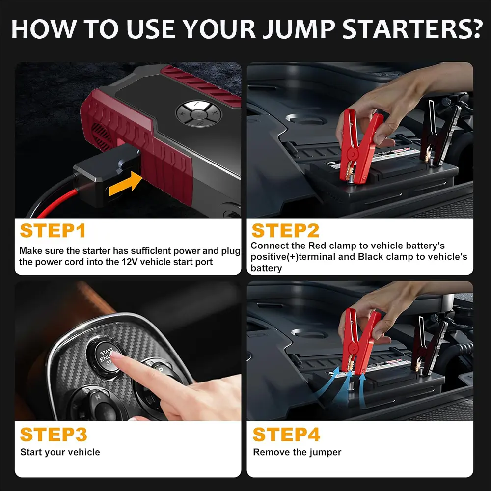 ·Winter Morning Rescue: On a frigid winter morning, your car refuses to start due to cold weather draining the battery. Our jump starter, with its robust cold-start capability, can instantly bring your 8.0L diesel truck back to life, getting you to work on time without the hassle of waiting for a tow truck.