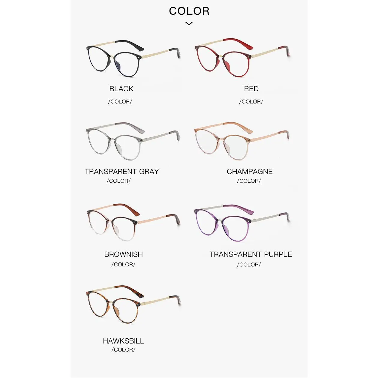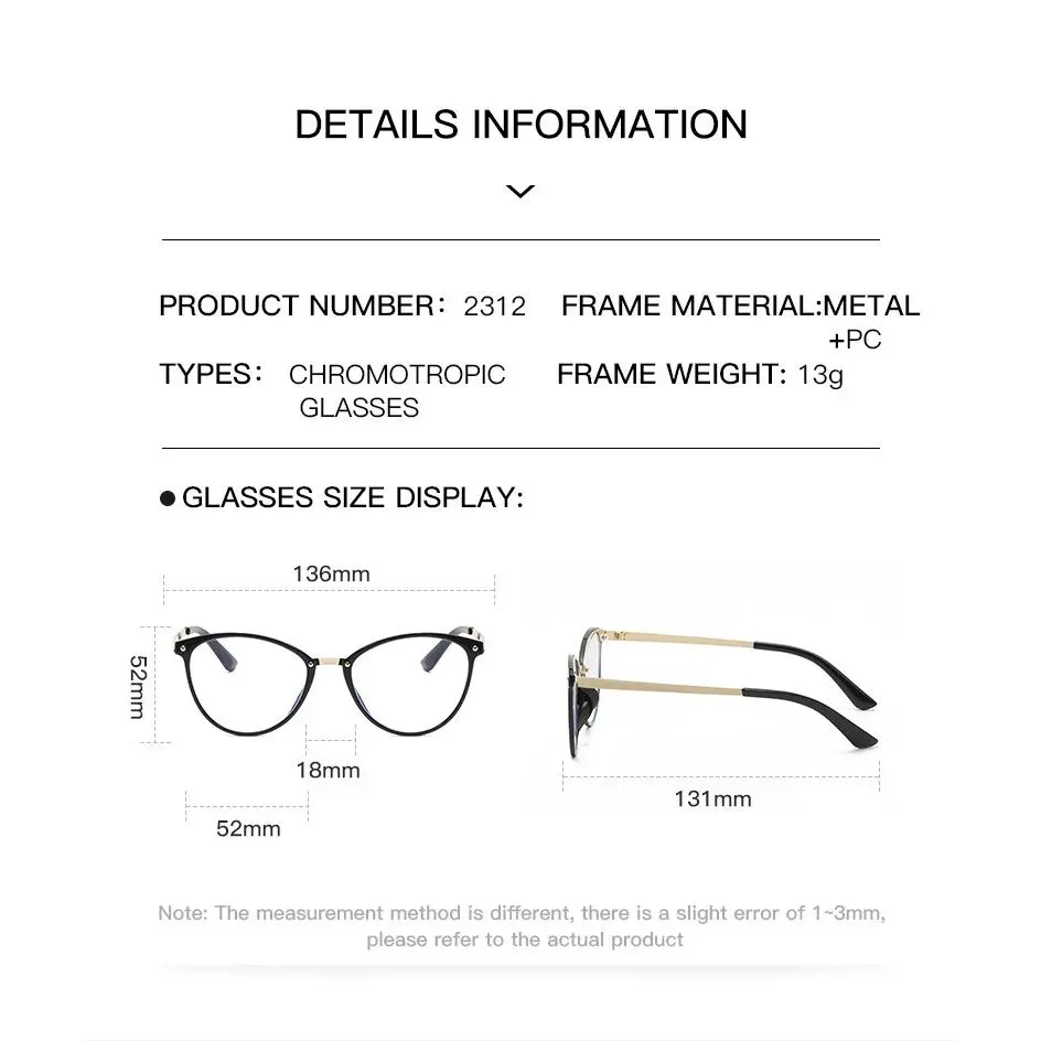 Color-changing anti-blue light glasses, fashionable cat-eye glasses frame, trendy metal eyeglass frame