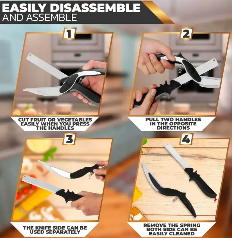 2 in 1 Kitchen Scissors Food Cutter, Stainless Steel Vegetable and Meat Cutting Shears with Built-in Cutting Board & Safety Lock