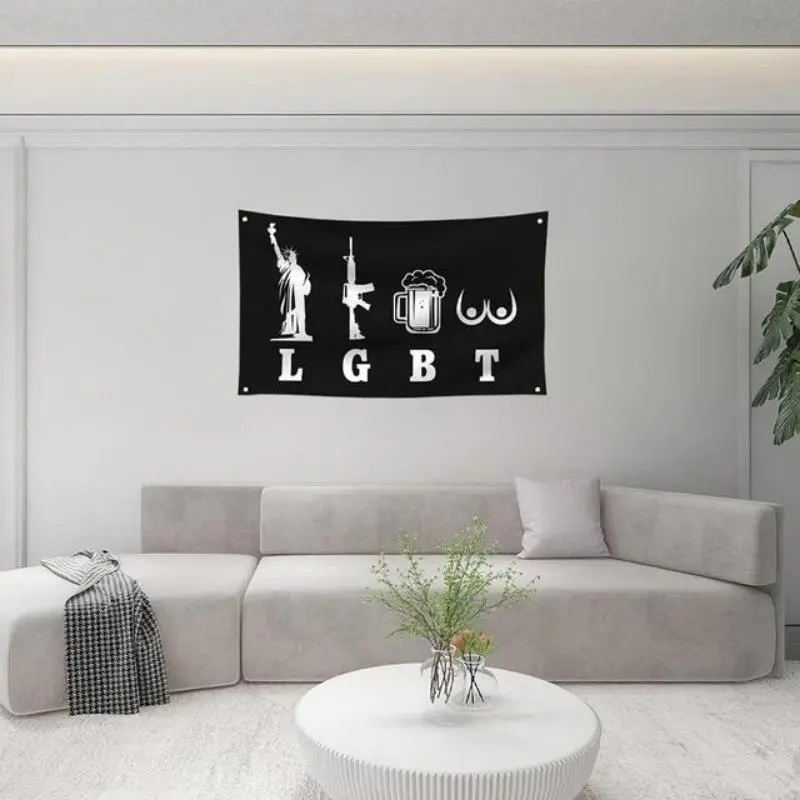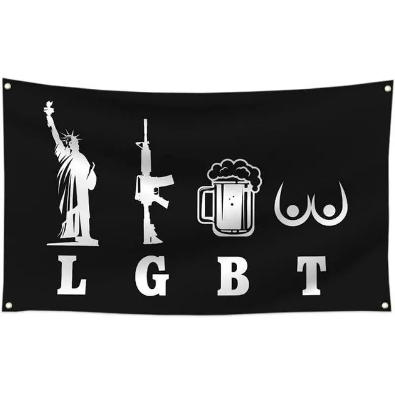 ·Humorous Design: This flag combines LGBT, Liberty, Gun, Beer, and Tits. It's a fun way to express support for the LGBT community and make a statement about gun rights and freedom. 🎉