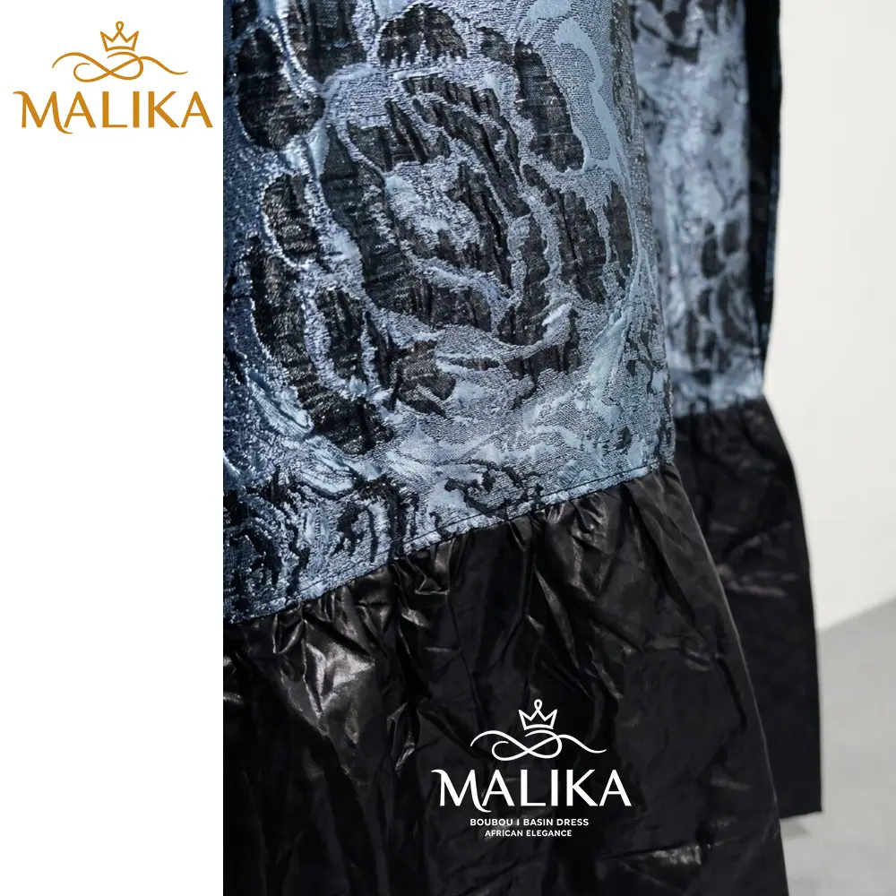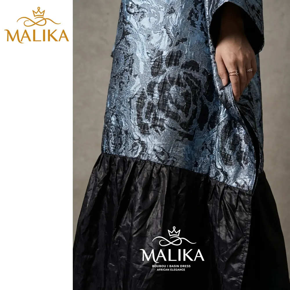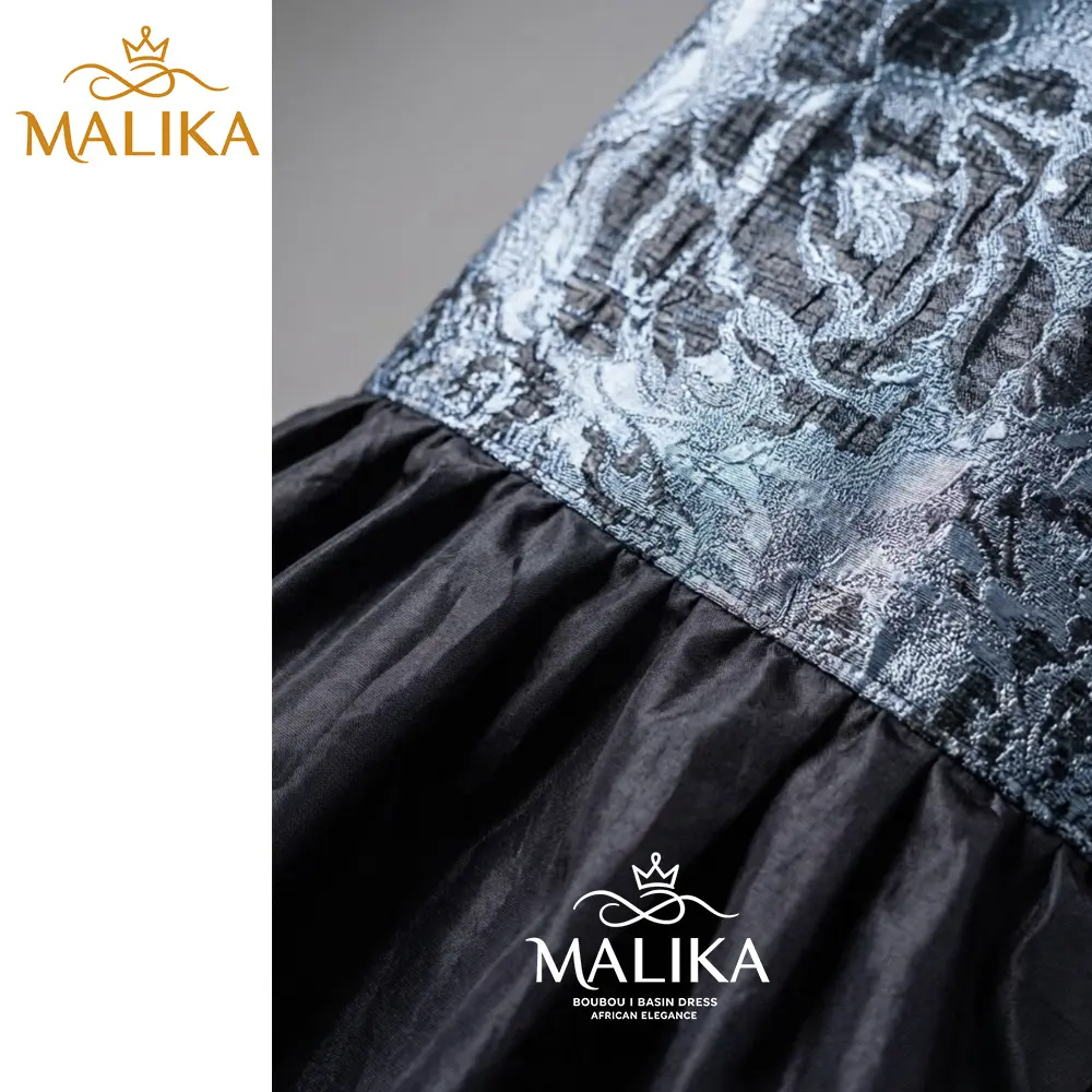 Black Brocard Bazin Boubou Dress With Scarf Nigerian French Elegant Women Dress Material Decoration For Evening Party Robe