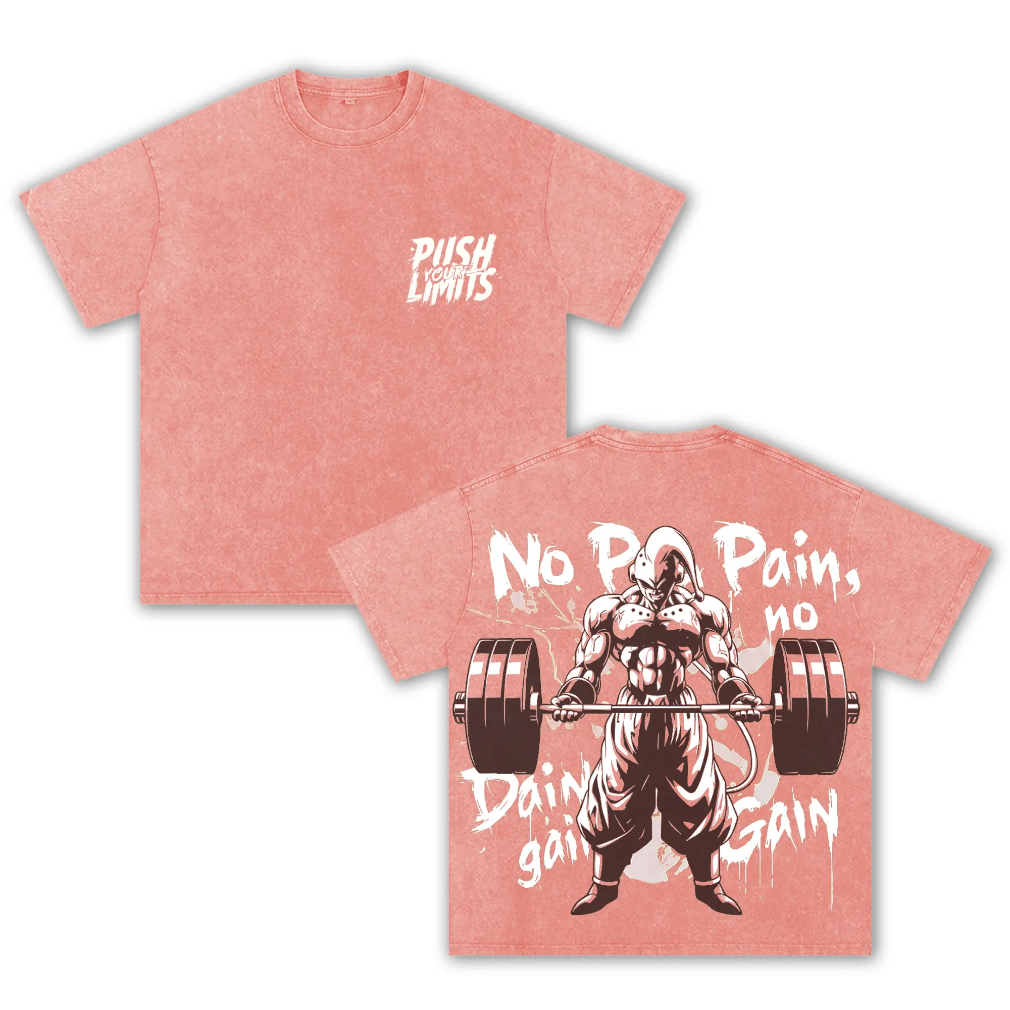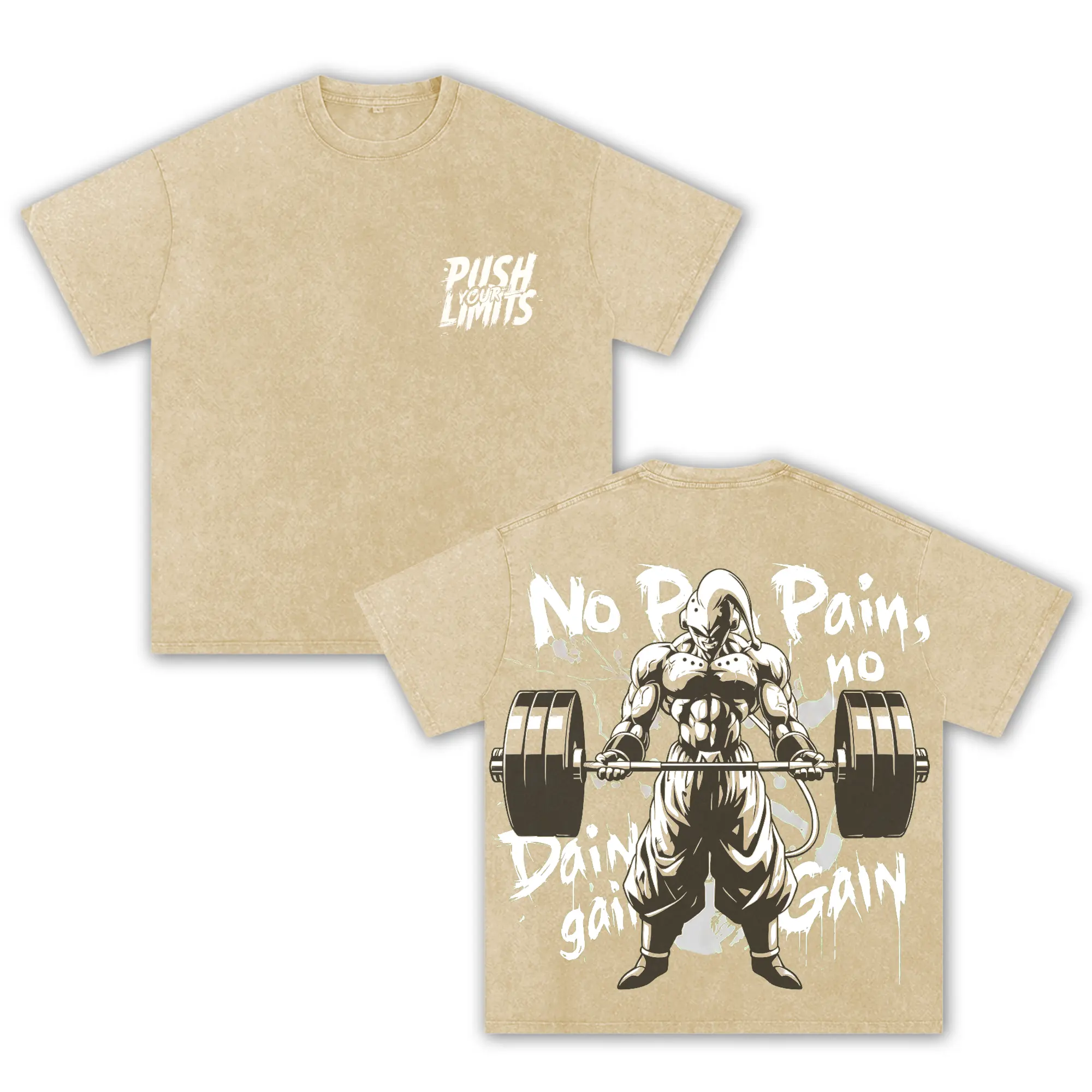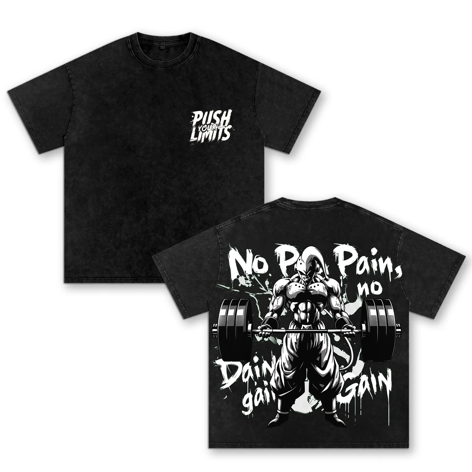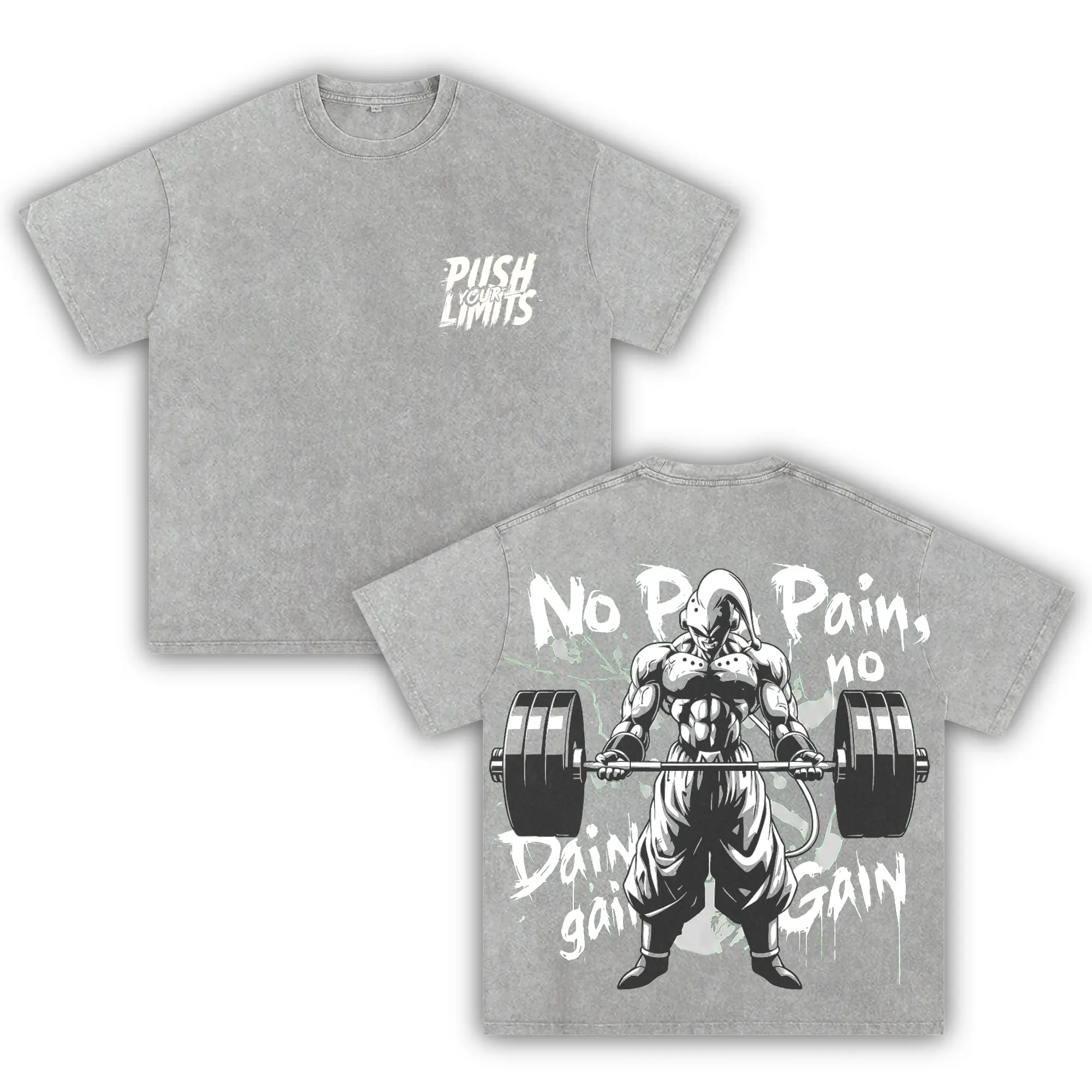 Anime Gym Oversized Washed T-Shirt, No Pain No Gain Graphic Tee, Bodybuilding Workout Shirt, Streetwear Pump Cover Unisex Vintage