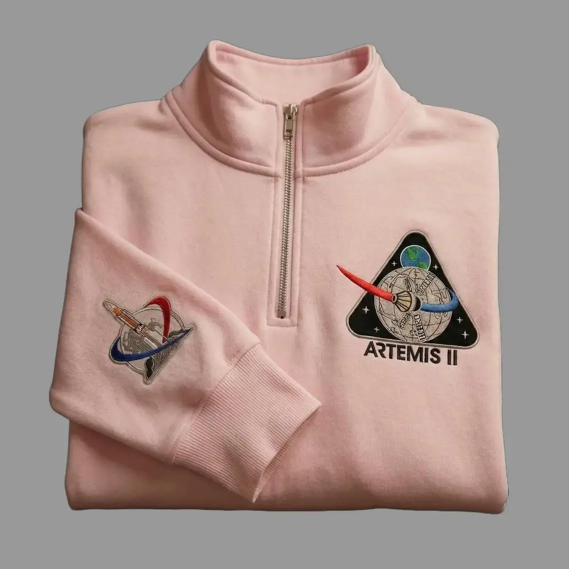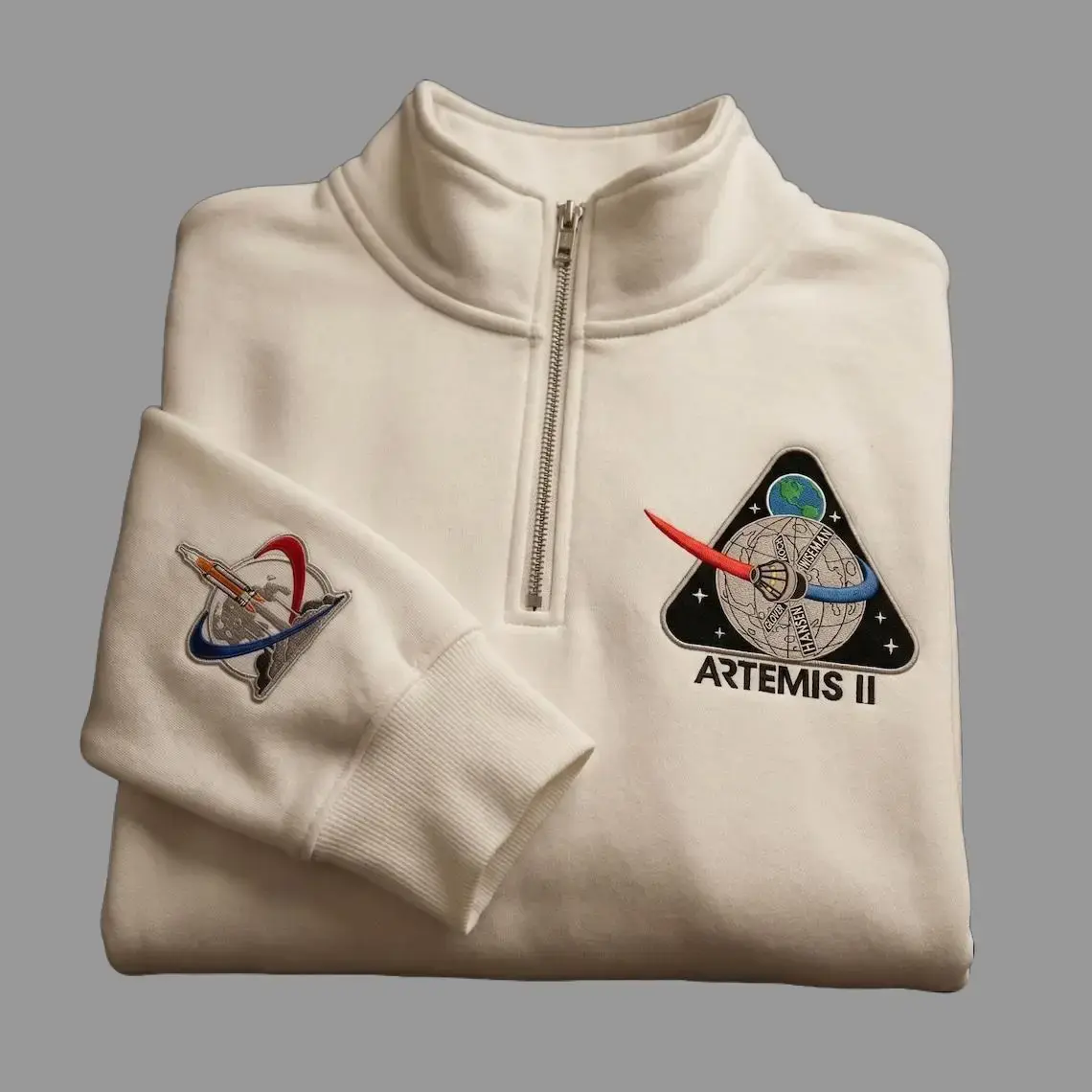 Artemis II Mission Embroidered Quarter Zip, Space Enthusiast Pullover, Astronaut Sweatshirt, NASA 1/4 Zip Sweater, Space Lover Gift