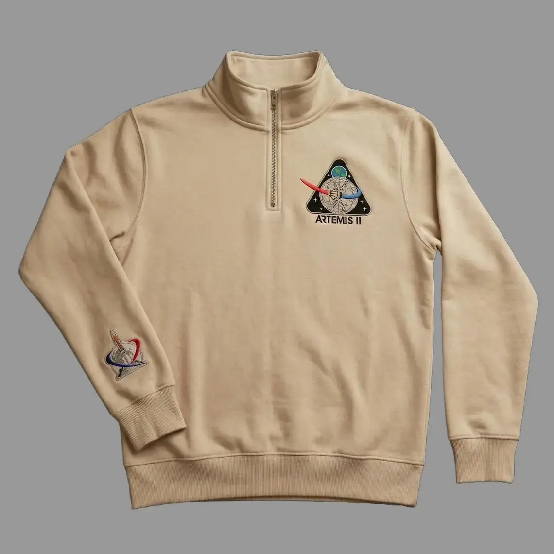 5. Artemis II Mission Embroidered Quarter Zip, Space Enthusiast Pullover, Astronaut Sweatshirt, NASA 1/4 Zip Sweater, Space Lover Gift