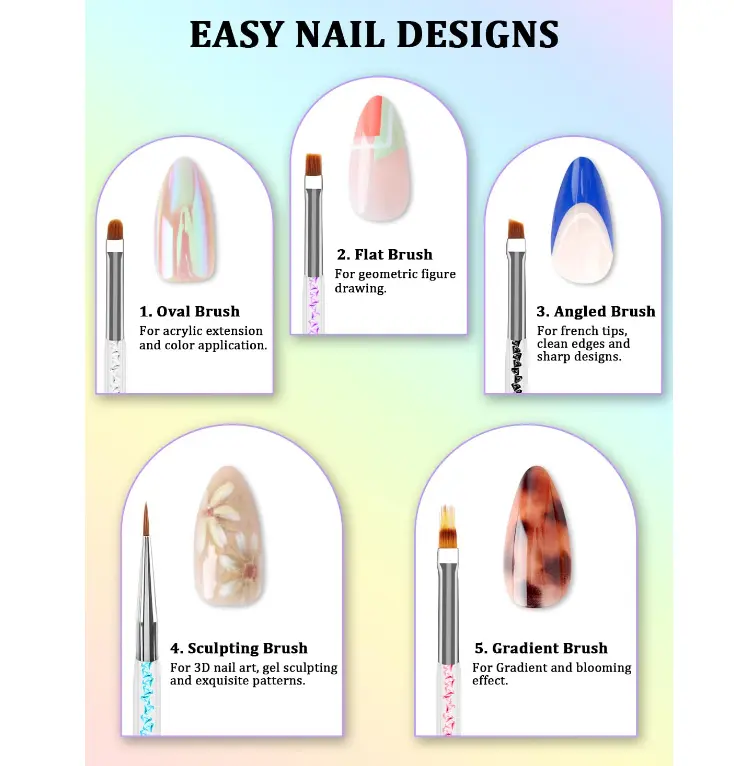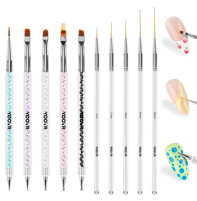 ·Precision Sizing System – Master intricate designs with YOOVR graduated liner brushes! From micro-details (7mm) to sweeping strokes (25mm), each brush features engraved sizes on transparent acrylic handles. Perfect for striping, floral patterns and french tips. Never struggle with inconsistent line widths again!