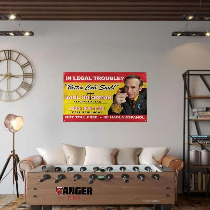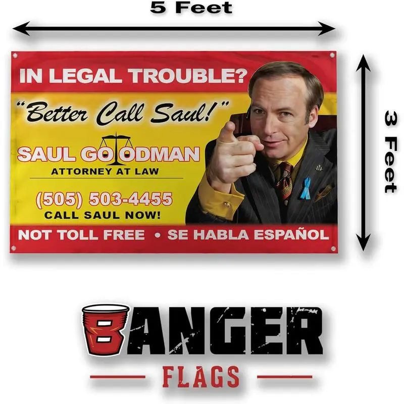 - Better Call Saul!Billboard Image Breaking Bad Saul Goodman Motivational Inspirational Office Gym Dorm Wall Decor Design on a 3X5 Feet Flag with 4 Grommets for Easy Hanging.Authentic BANGER FLAG.