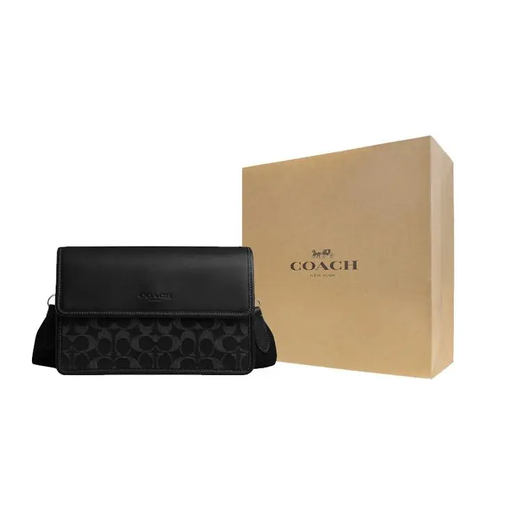 COACH Turner 24 Snap-Front Crossbody Bag for Men – Denim and Smooth Calfskin Blend, Medium Size, Black