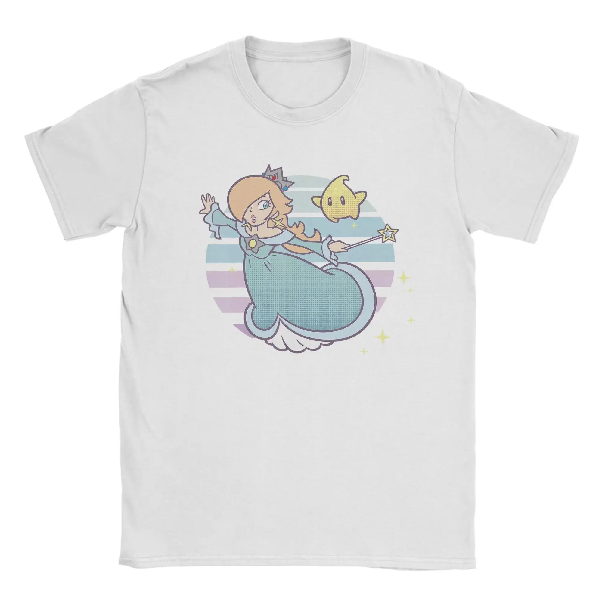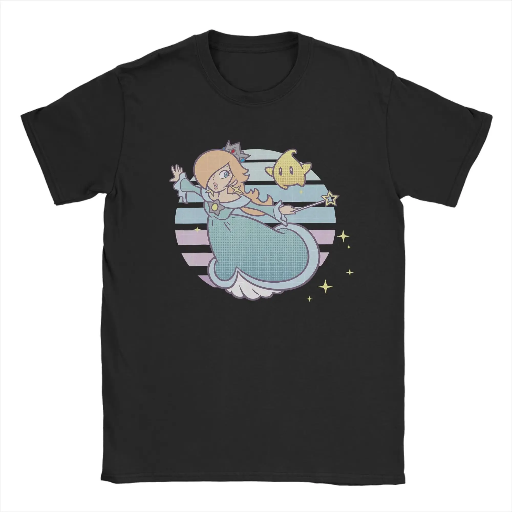 Super Marios Rosalina and Luma Striped T Shirts Men Cotton Humor T-Shirts O Neck Tee Shirt Short Sleeve Clothes Plus Size Relaxed Fit Top