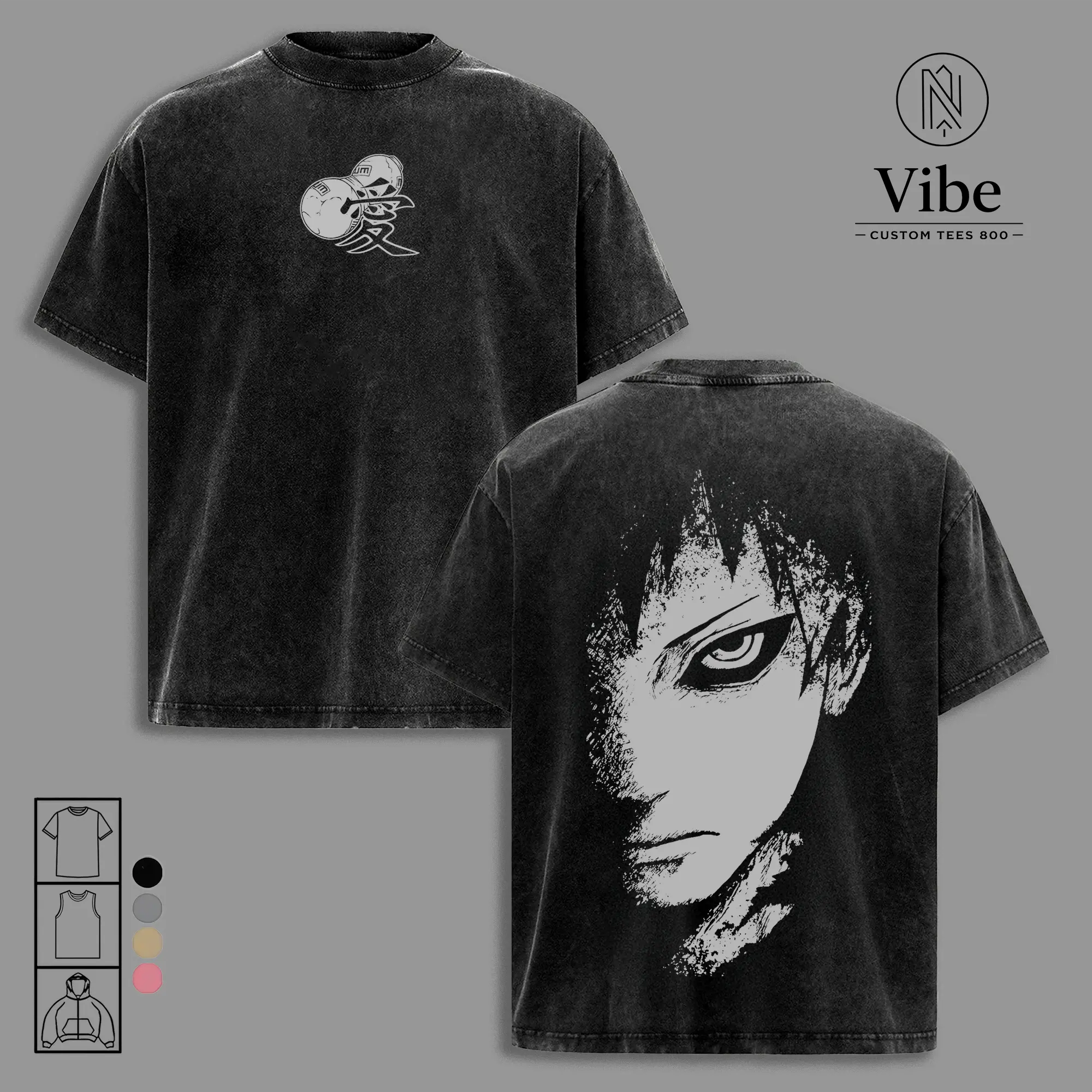 Gaara Naruto Vintage Washed Oversized T Shirt, Tank Top, Dark Anime Aesthetic Graphic Tee, Manga Streetwear Heavyweight Cotton Unisex Shirt, Gift for Anime Fans