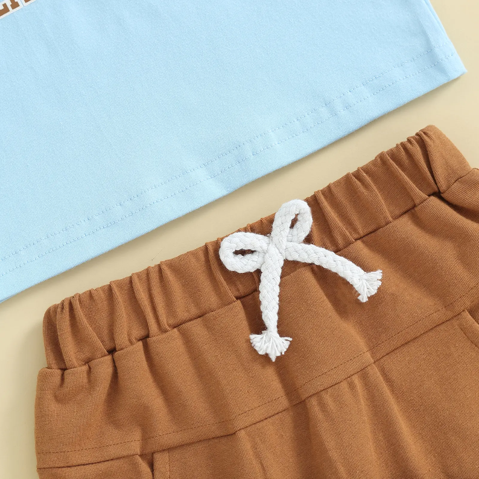 Toddler Boy Summer Clothes Letter Print Short Sleeve T-Shirt with Elastic Waist Solid Color Shorts 2Pcs Outfit