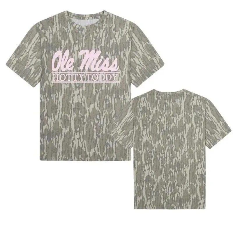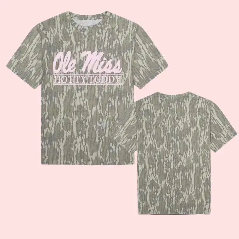 Ole Miss Bottomland Camo Mossy Oak Washed Out Camo Tee, Hunting Camo Tee T Shirt, T shirt 3D Camo, Style T Shirt 3D Camo, Gift For Women