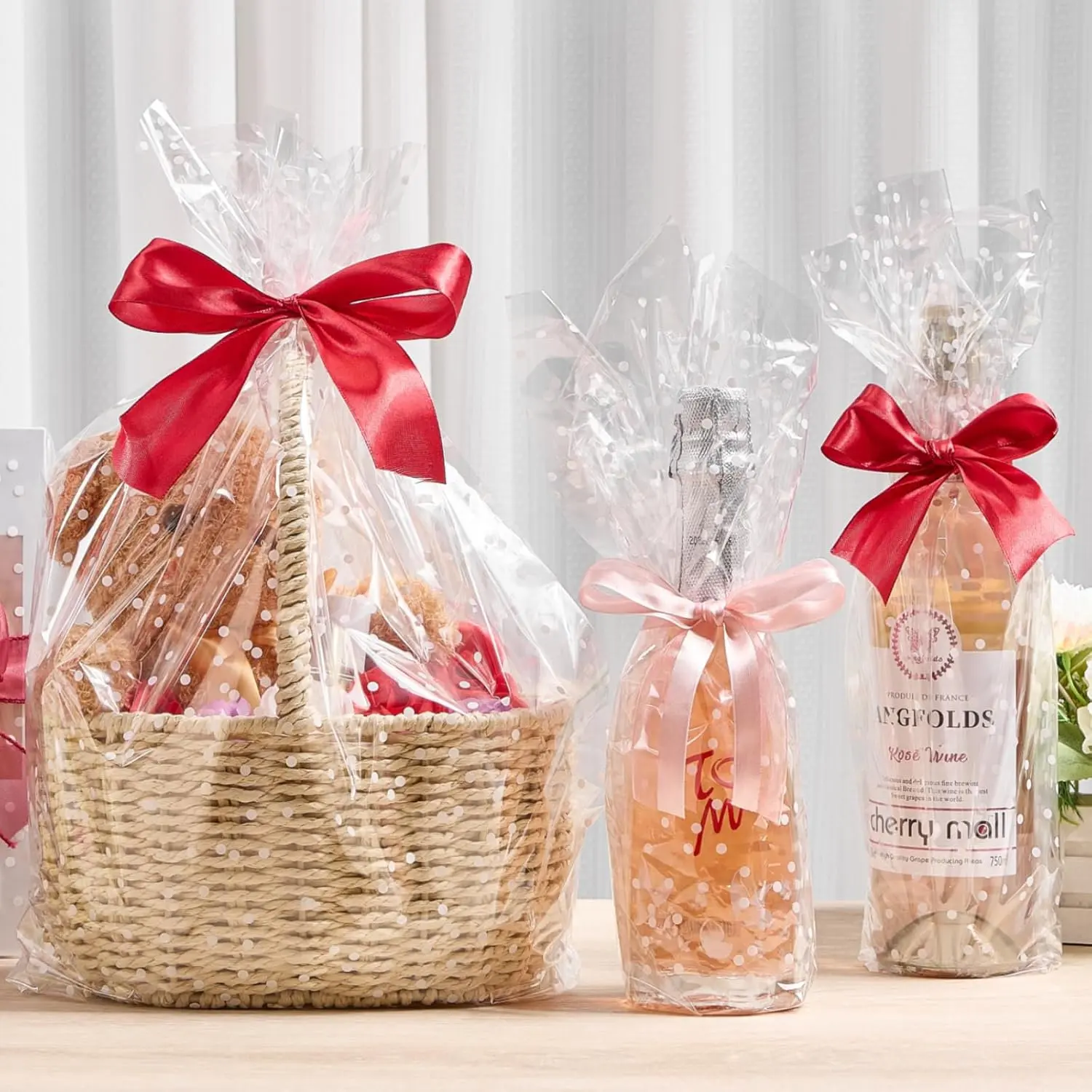 ·White Snow Dots: Clear basket wrap is printed with irregular white snow dots, cute and lively, providing an attractive appearance for your gift basket or flower bouquet