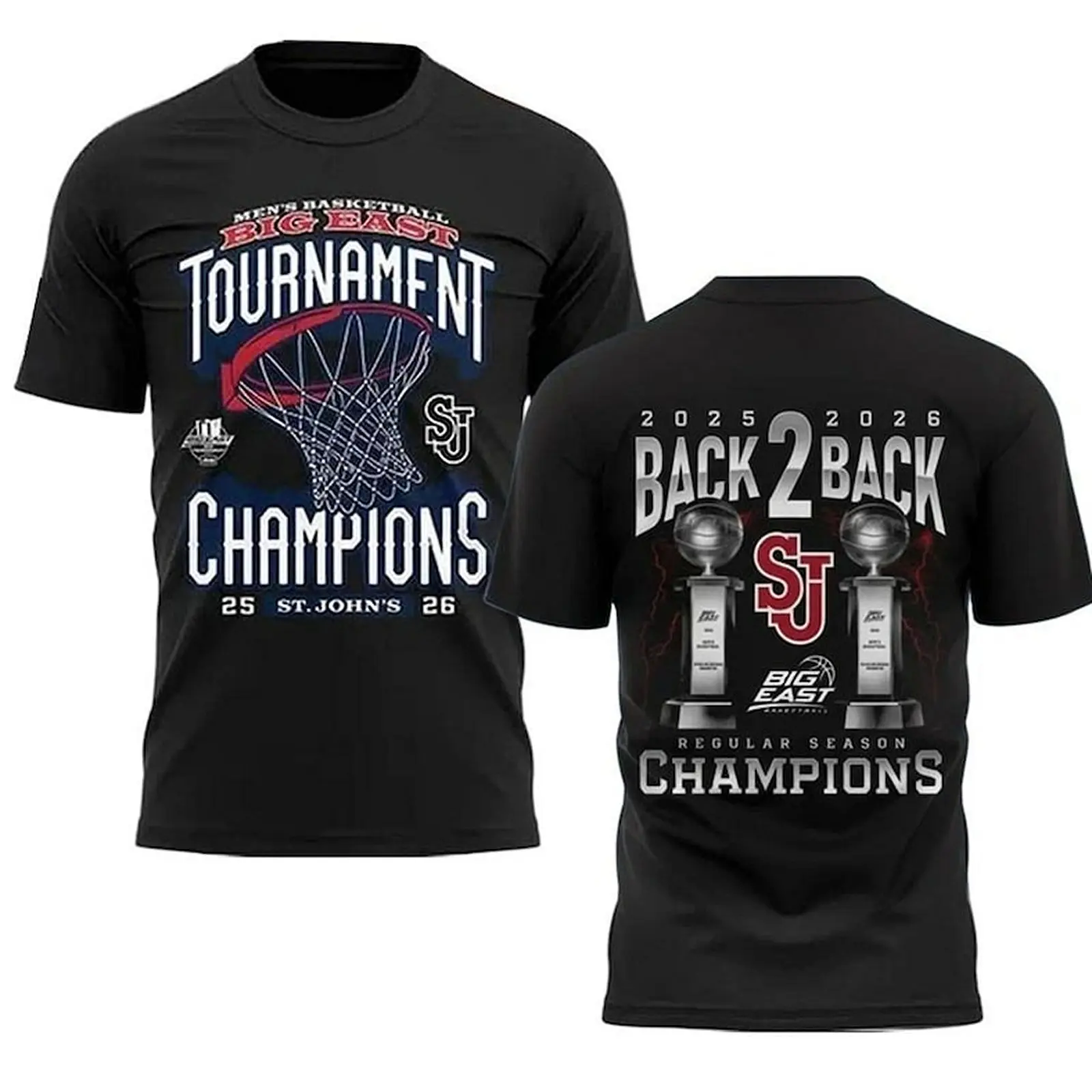 St John’s Red Storm 2026 Big East Tournament Back 2 Back Champs T-Shirt Printed Tee Pure Cotton Fabric Casual Streetwear Crew Neck Short Sleeve T-Shirt Trendy Tops for Women for Men, Perfect Gift