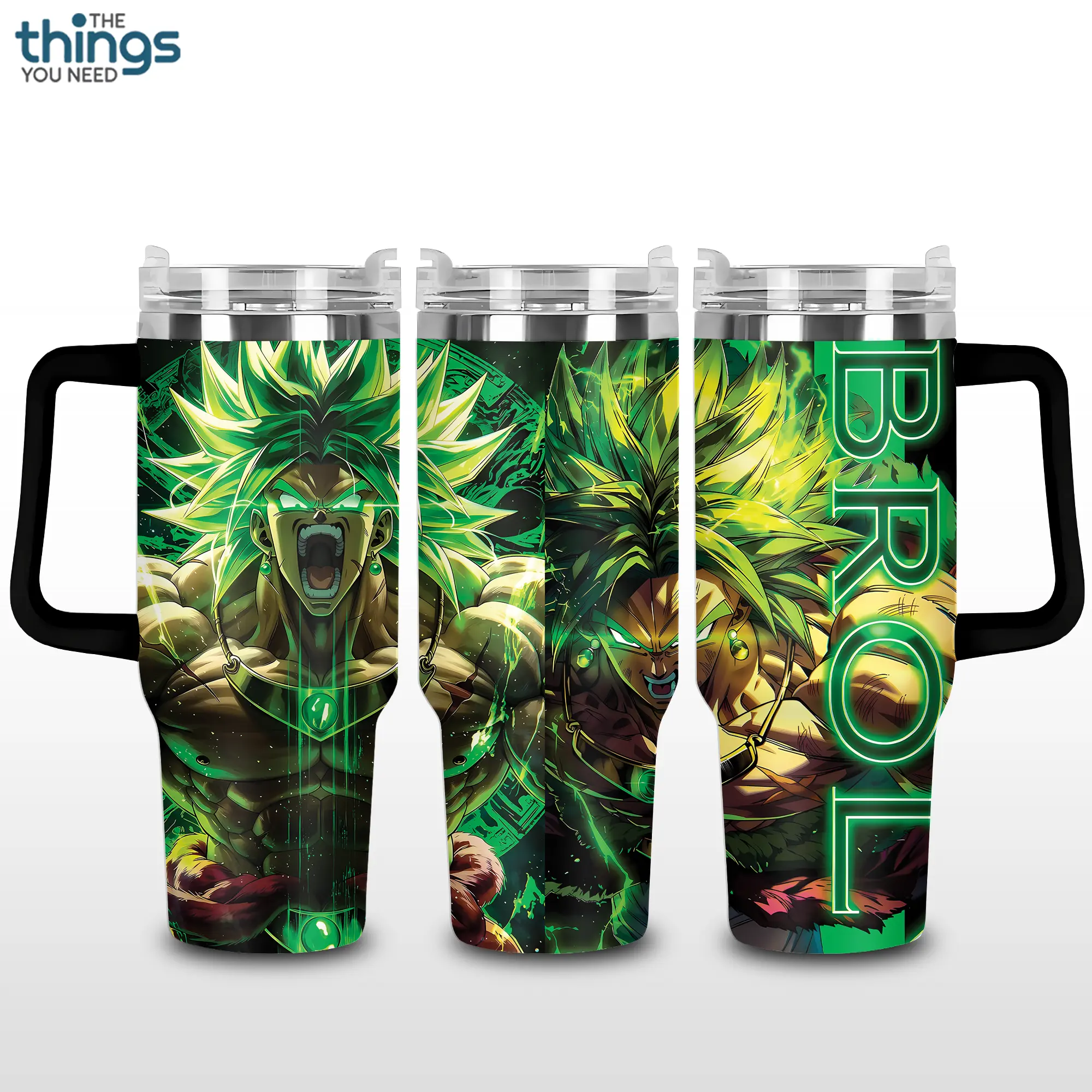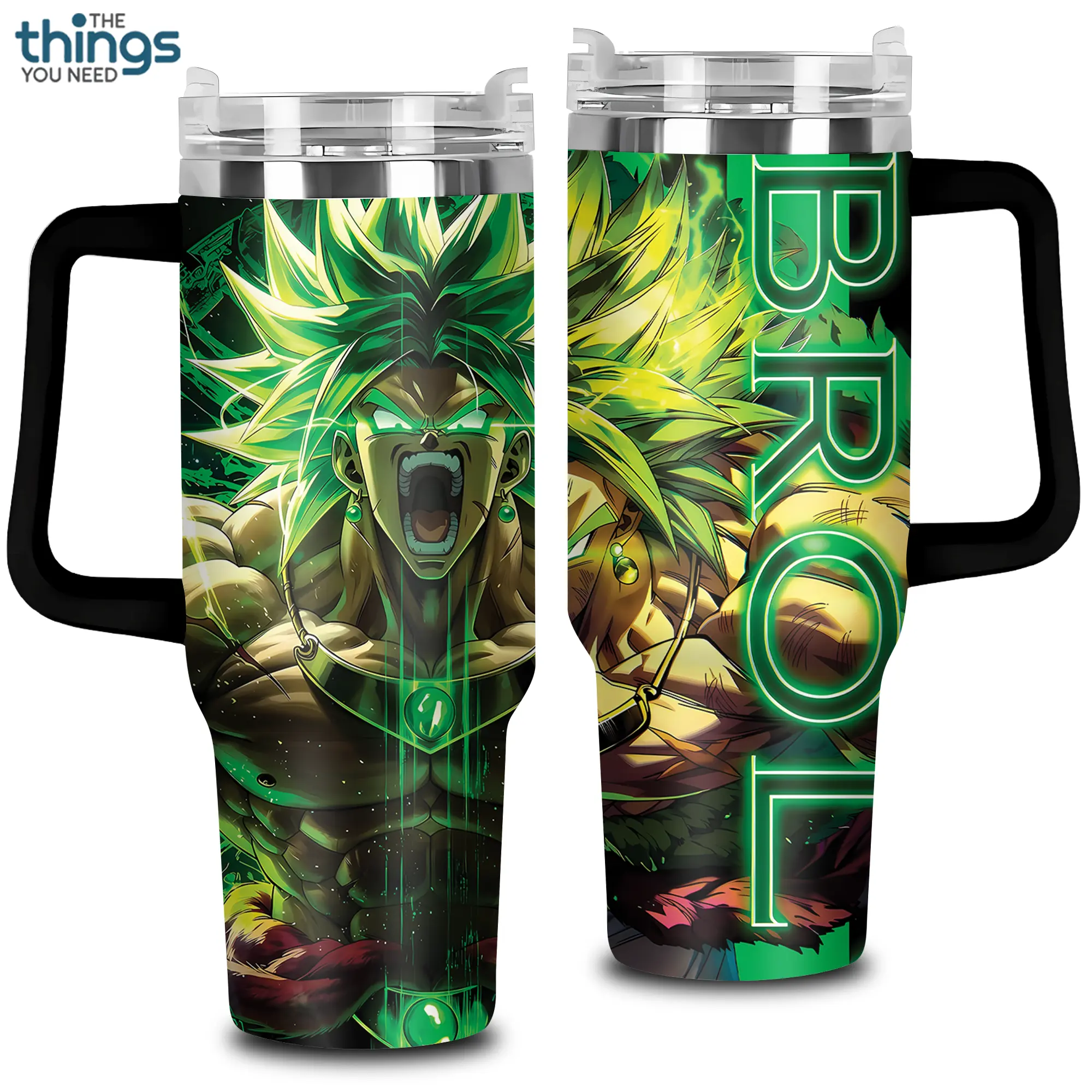 5. Broly - Legendary Saiyan Warrior 20oz - 40oz With Handle Tumbler, Green Energy Anime Stainless Steel Tumbler, Powerful Fighter Drinkware, Perfect Gift For Anime Fans