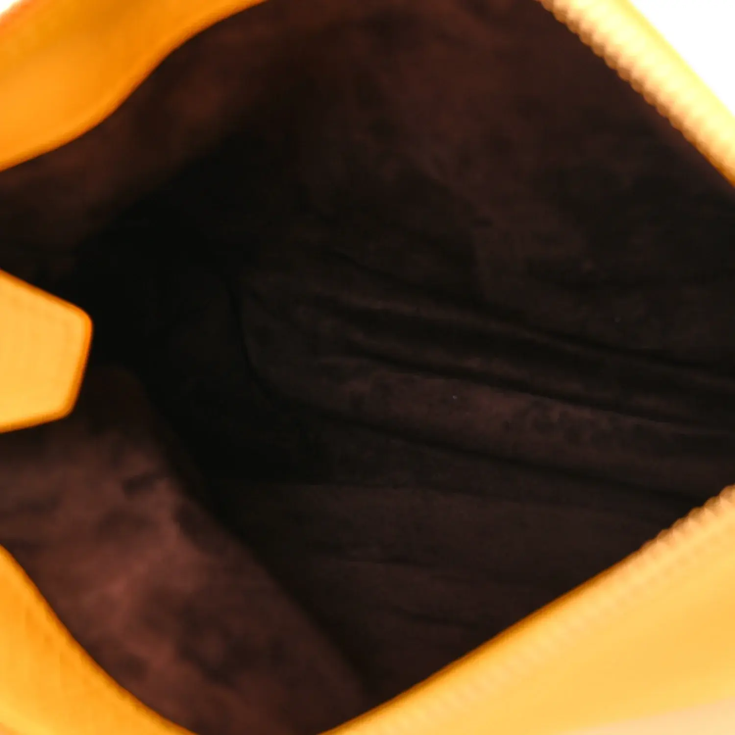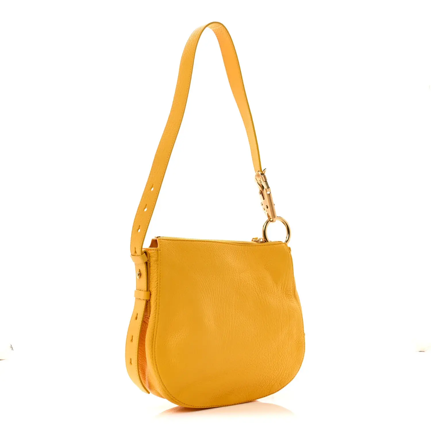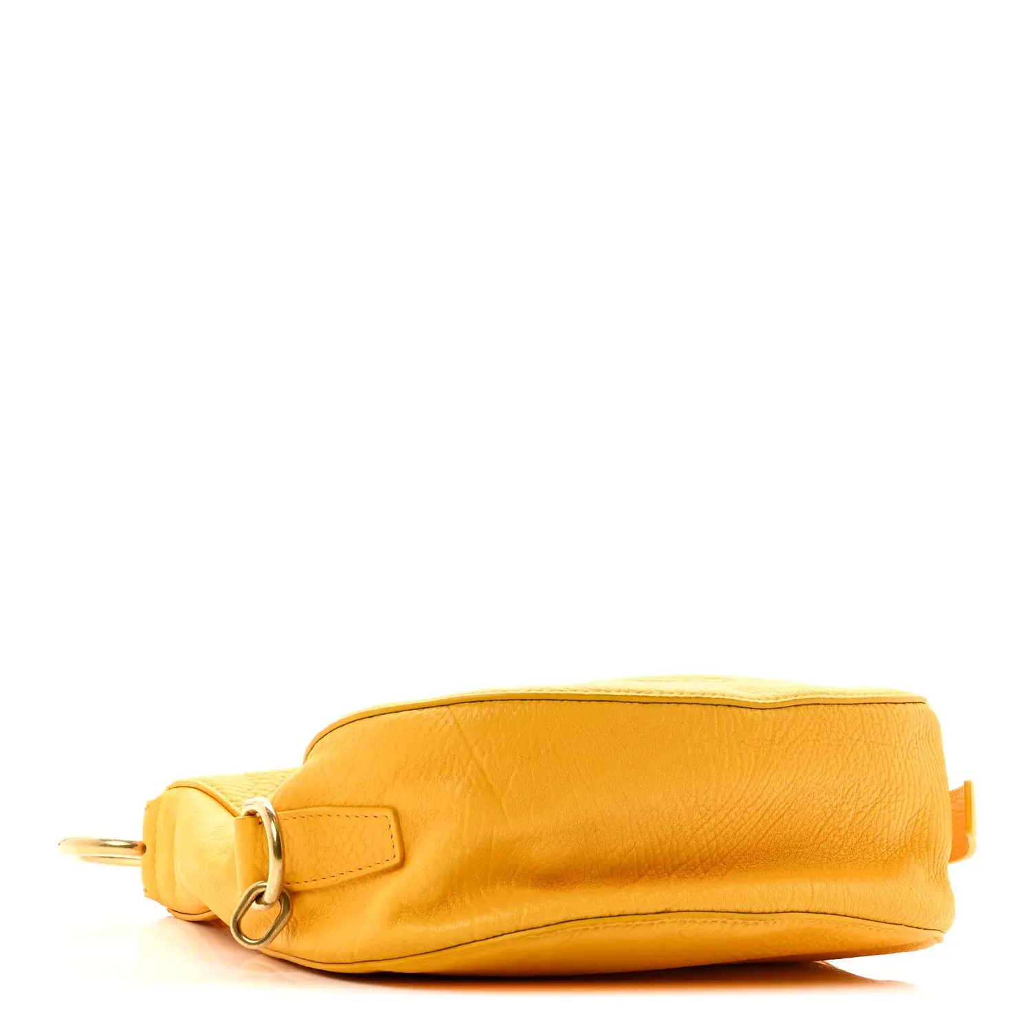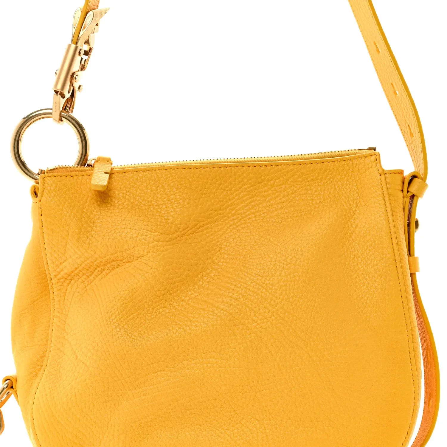 This is an authentic BURBERRY Grainy Calfskin Small Knight Crossbody Bag in Mimosa. This chic bag is crafted of grained leather in yellow. The bag features a long adjustable leather shoulder strap with gold hardware that can be attached to the ring and make it a more traditional tote bag. The top zipper opens to a burgundy suede interior.
