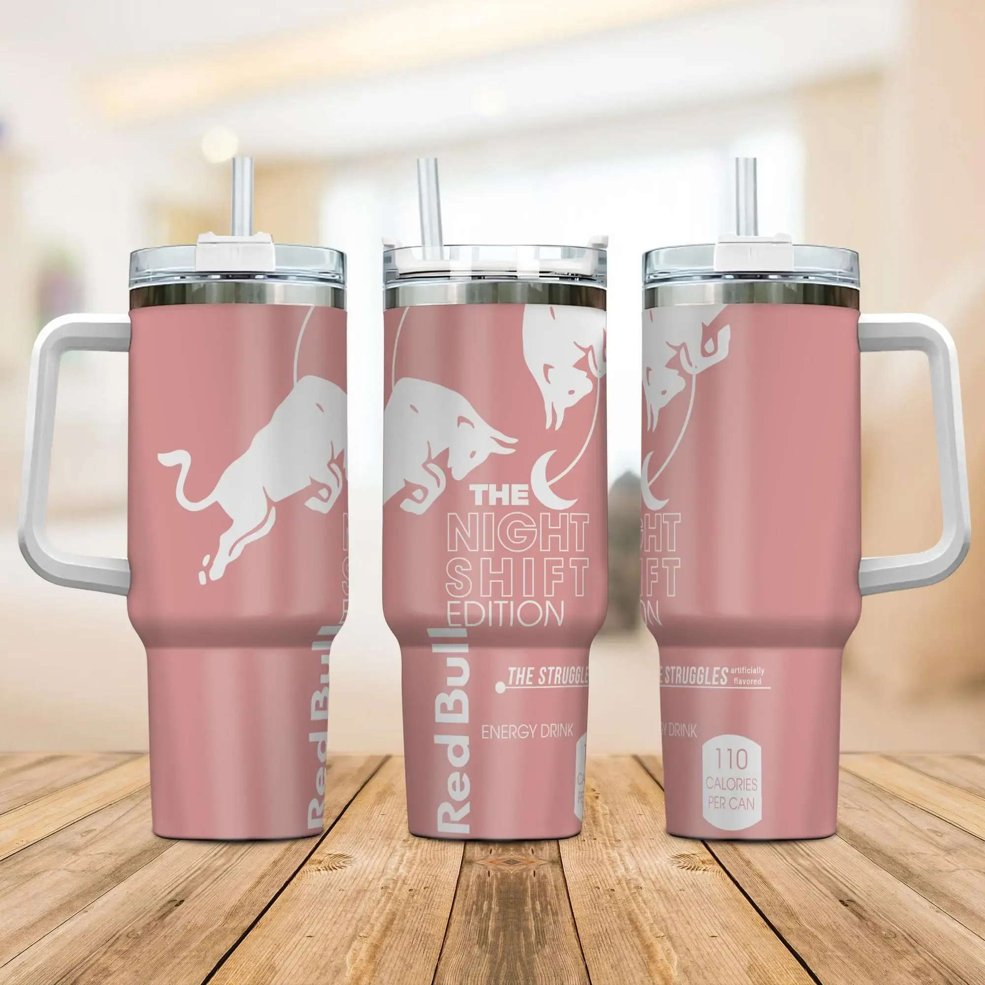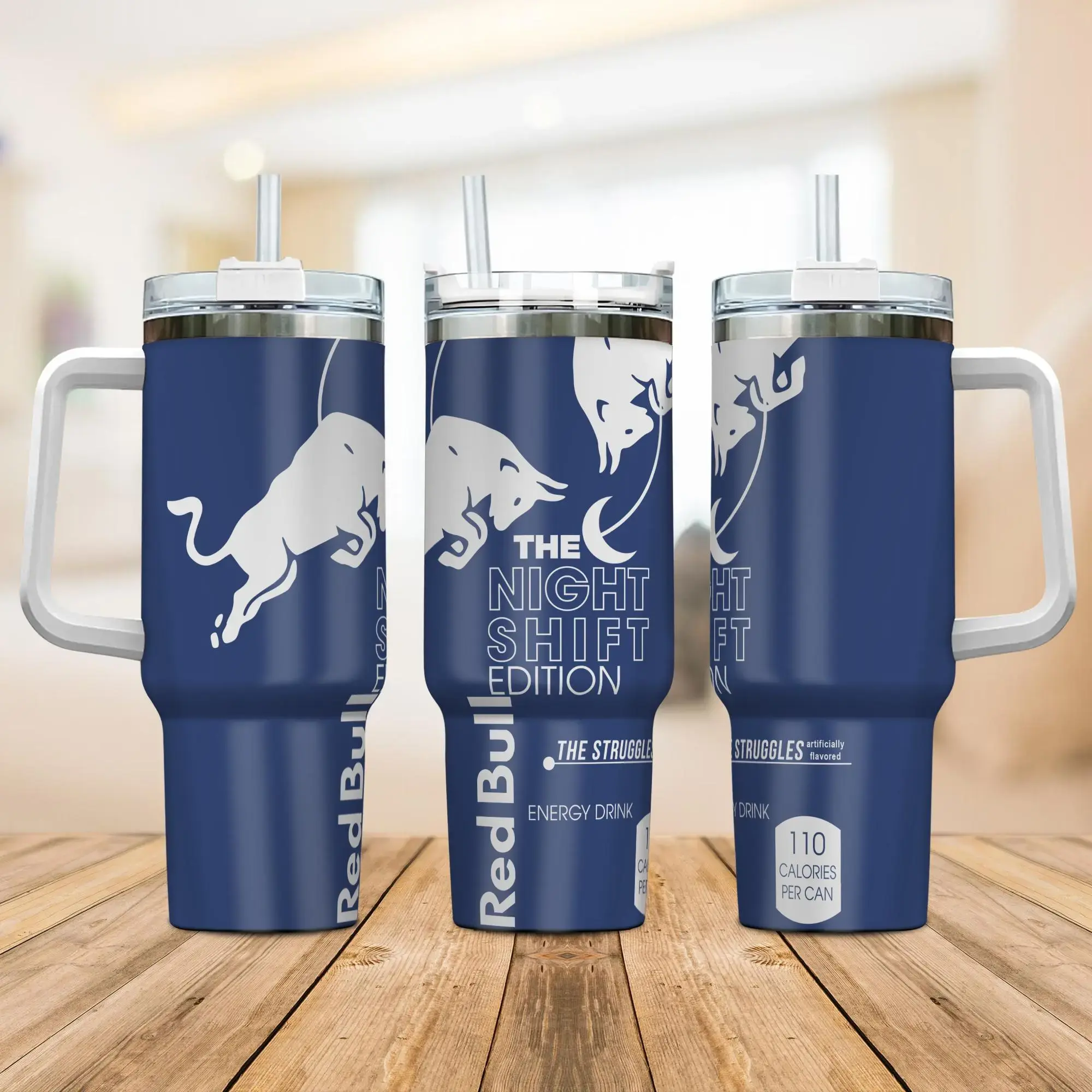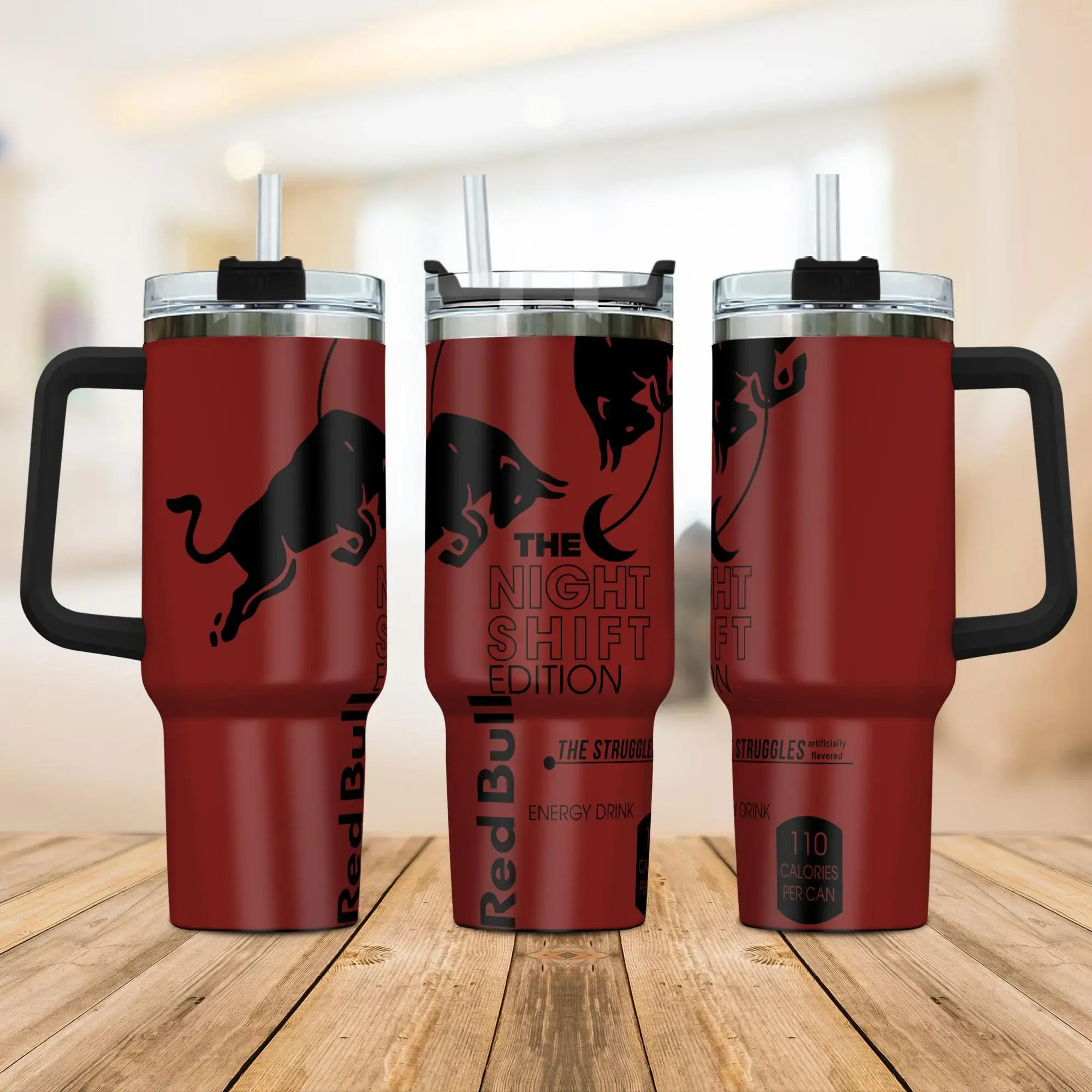 Many Style Nightshift Worker Edition Energy Drink Can Style Wraparound 40oz Stainless Steel Tumbler With Handle, Gift For Men Women, Workers 40oz Tumbler