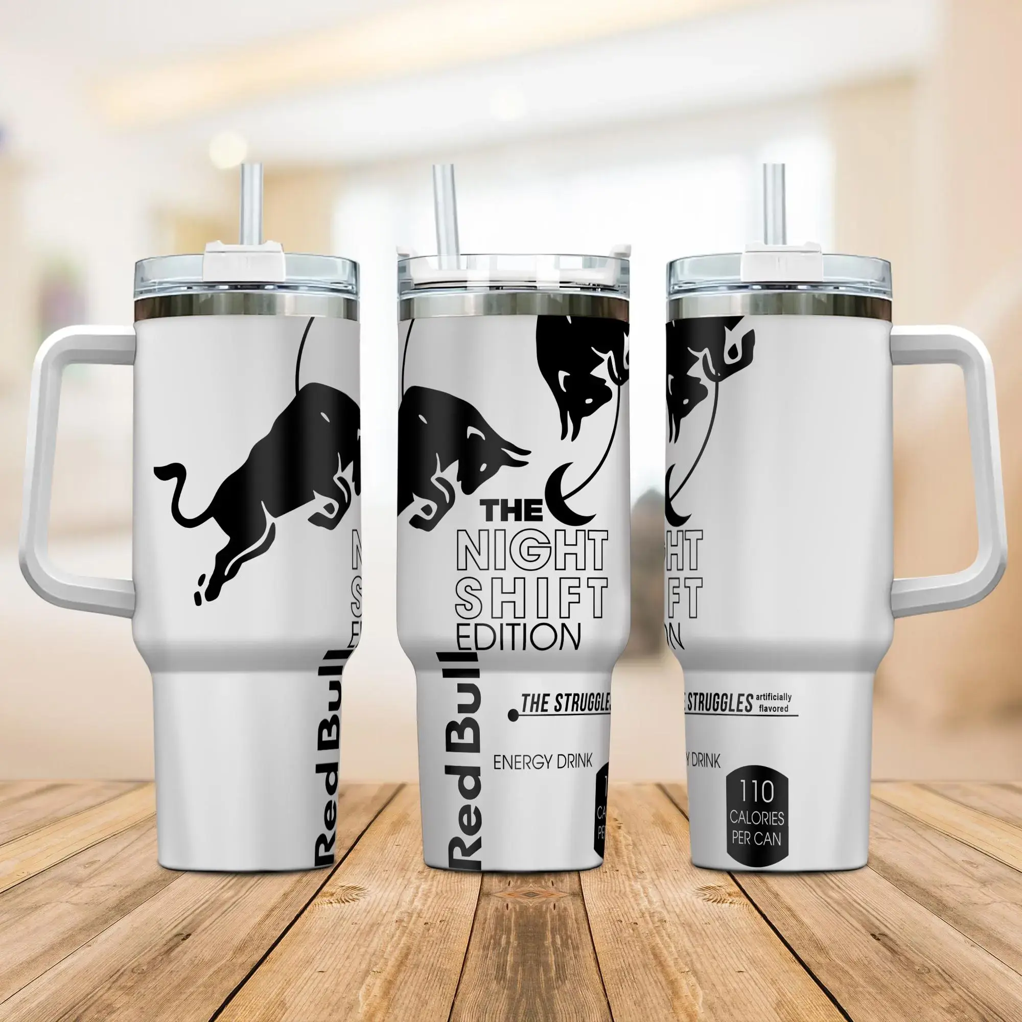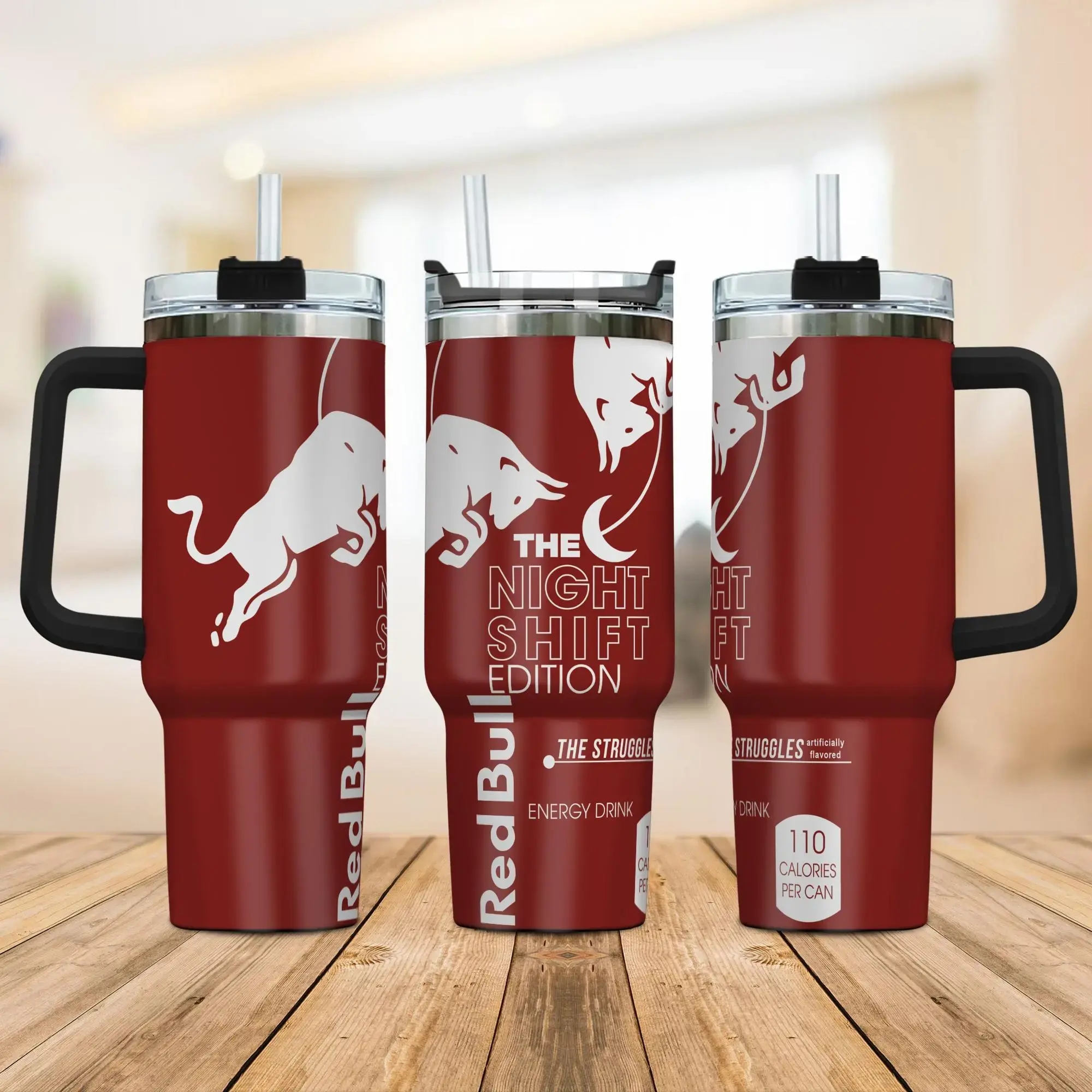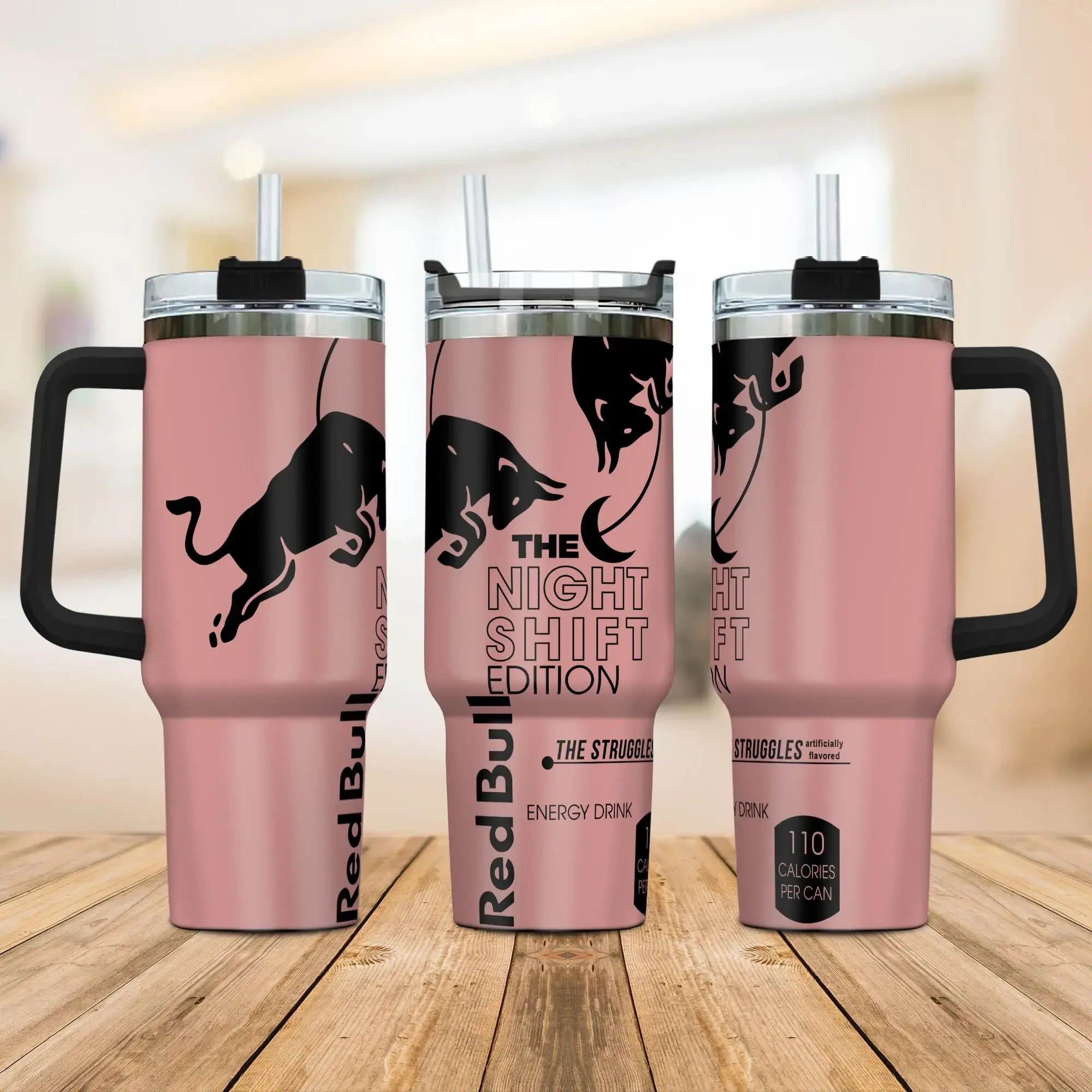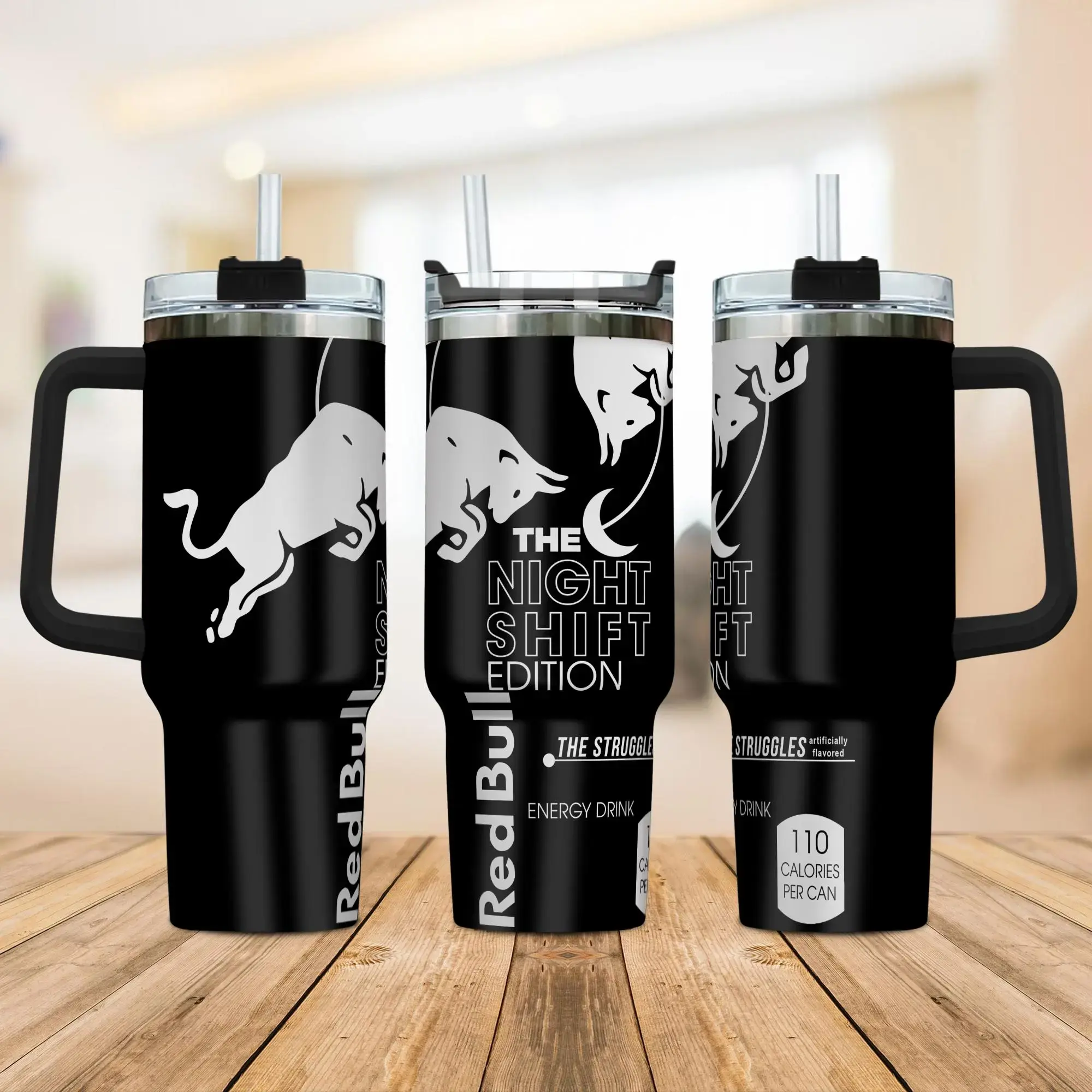 Many Style Nightshift Worker Edition Energy Drink Can Style Wraparound 40oz Stainless Steel Tumbler With Handle, Gift For Men Women, Workers 40oz Tumbler