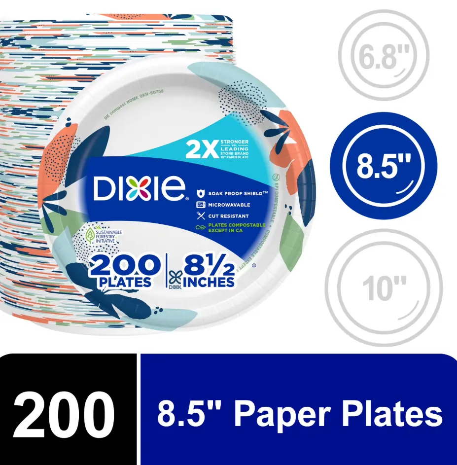 ·Responsibly made—Dixie paper plates 8.5 inch deliver the same strength and performance, but with the added benefit of being compostable except in California