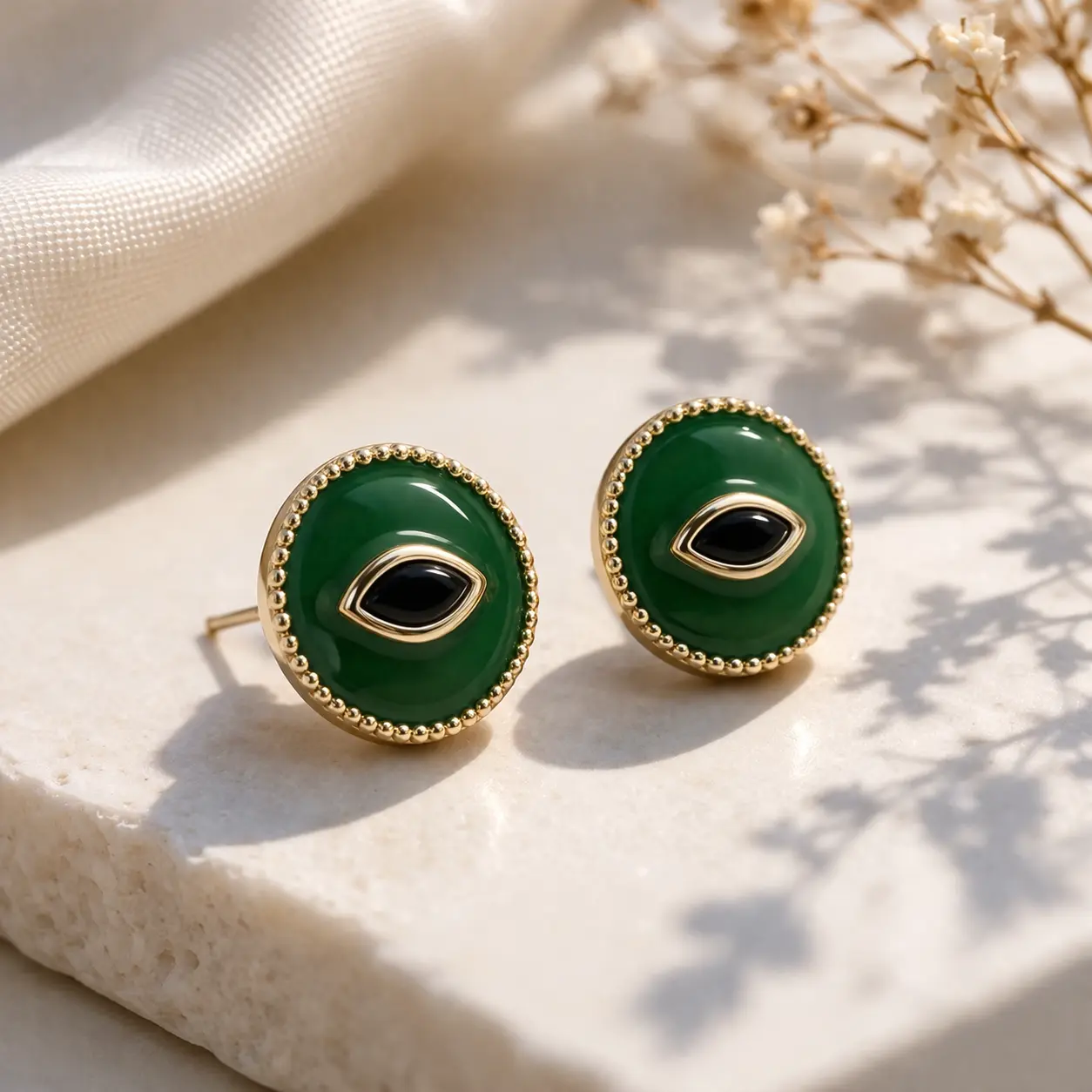 ✨ Pair these earrings with casual or formal attire. The green evil eye symbolizes protection and good luck. A versatile accessory that complements various styles.