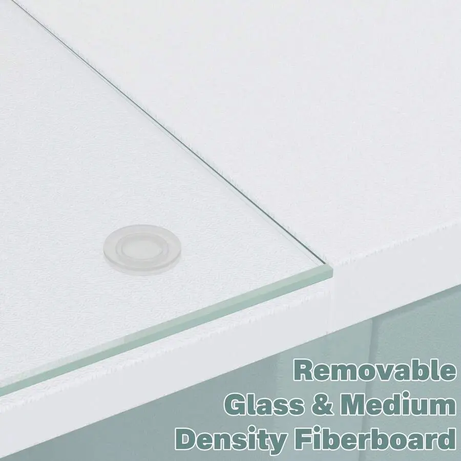 ✅Easy-to-Clean Glass Countertop: The simple, transparent glass countertop is designed for nail work-resistant to residual nail dust, glue, and paint.Cleanup is a breeze; just wipe it down with alcohol to keep your salon station or home workspace looking fresh and professional.