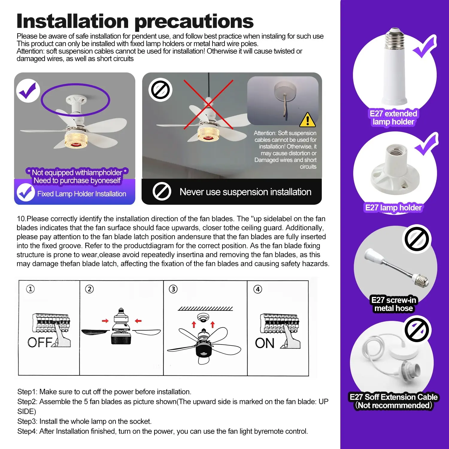 【E27 Lamp Holder】: Compatible with standard E27 lamp holders, allowing seamless integration into existing lighting setups.