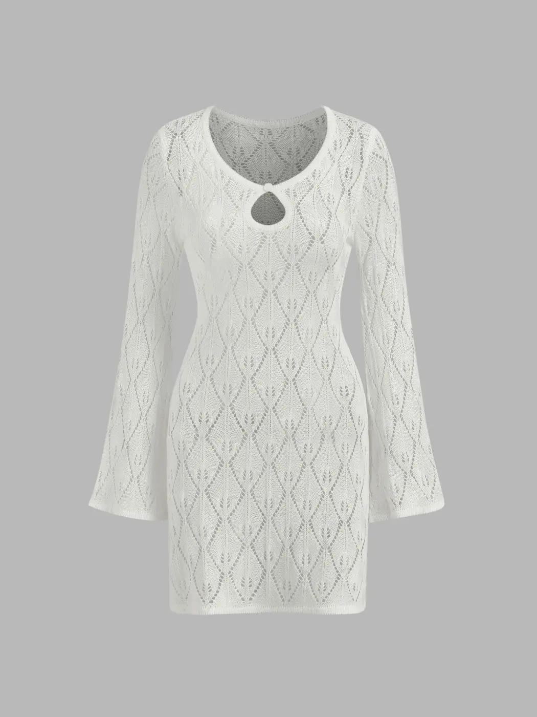 Knit Round Neckline Cut Out Crochet Cover Up Dress