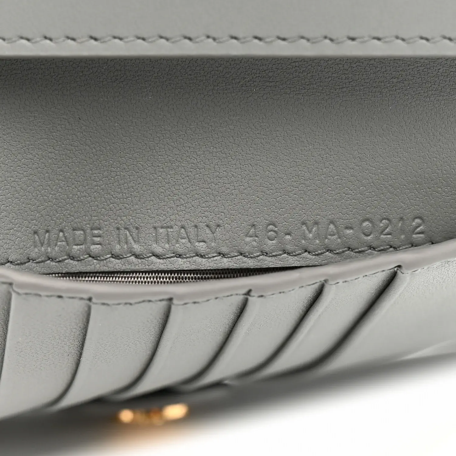 This is an authentic CHRISTIAN DIOR Grained Calfskin Supple Cannage Caro Dahlia Wallet in Grey. This chic wallet is crafted of geometric quilted grained calfskin leather in cool-tone grey and features gold hardware. The wallet opens to a matching leather interior with card slots and a bill compartment and has a zipper compartment.