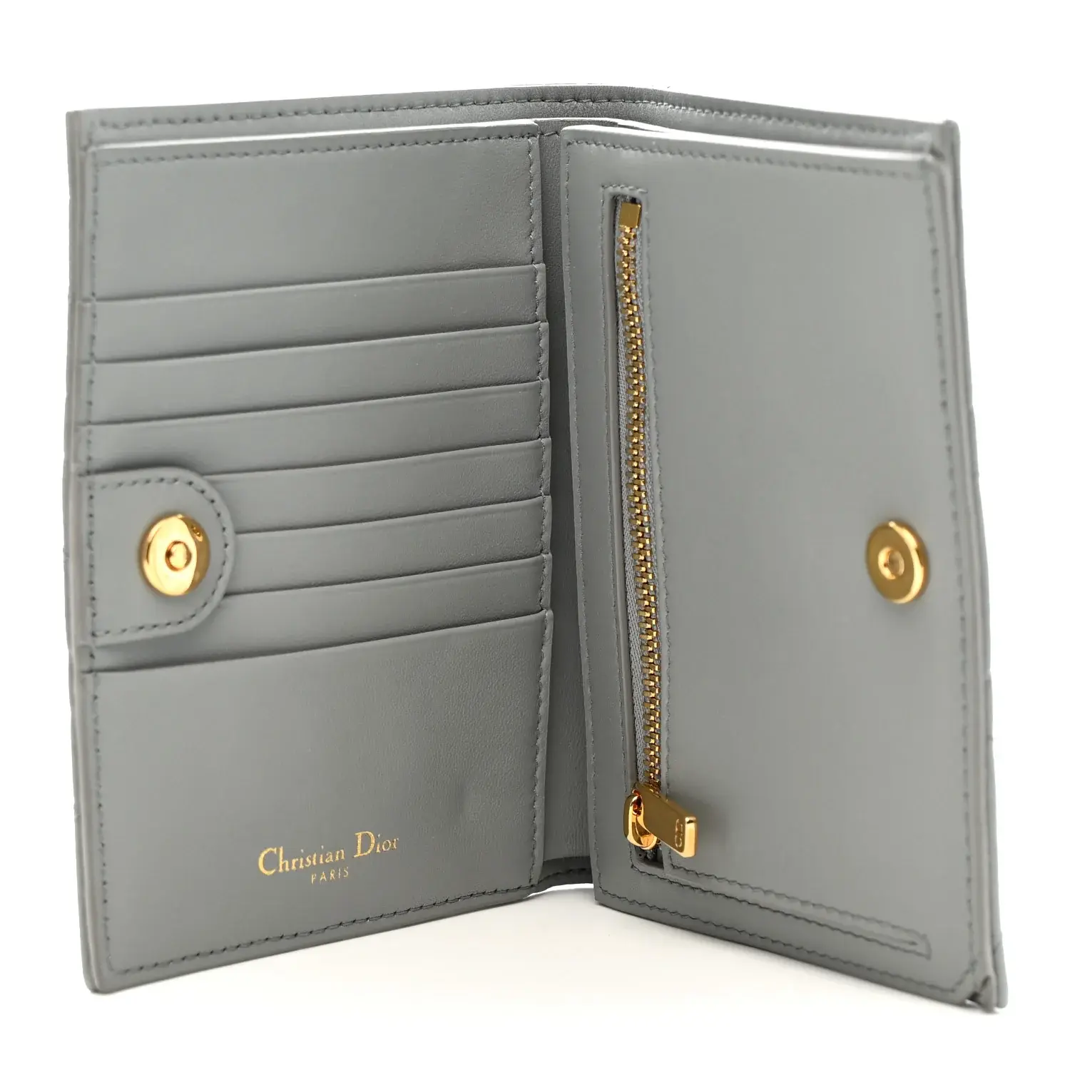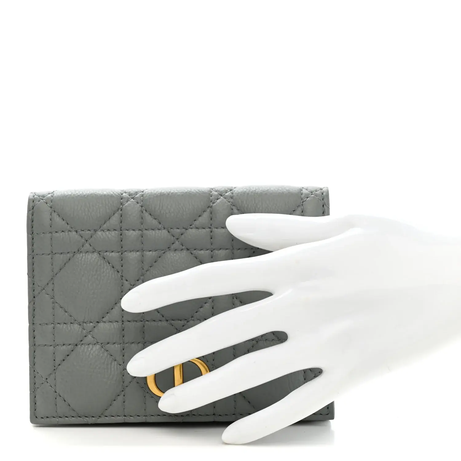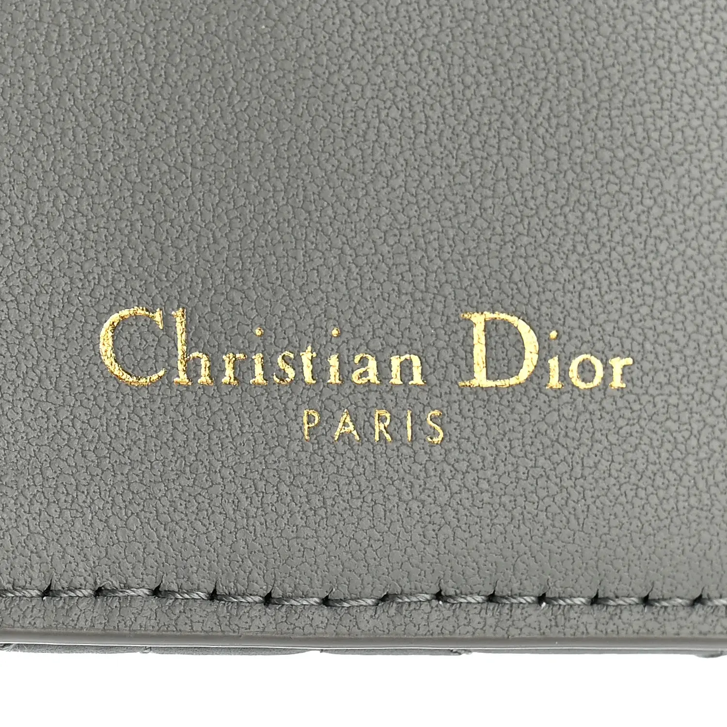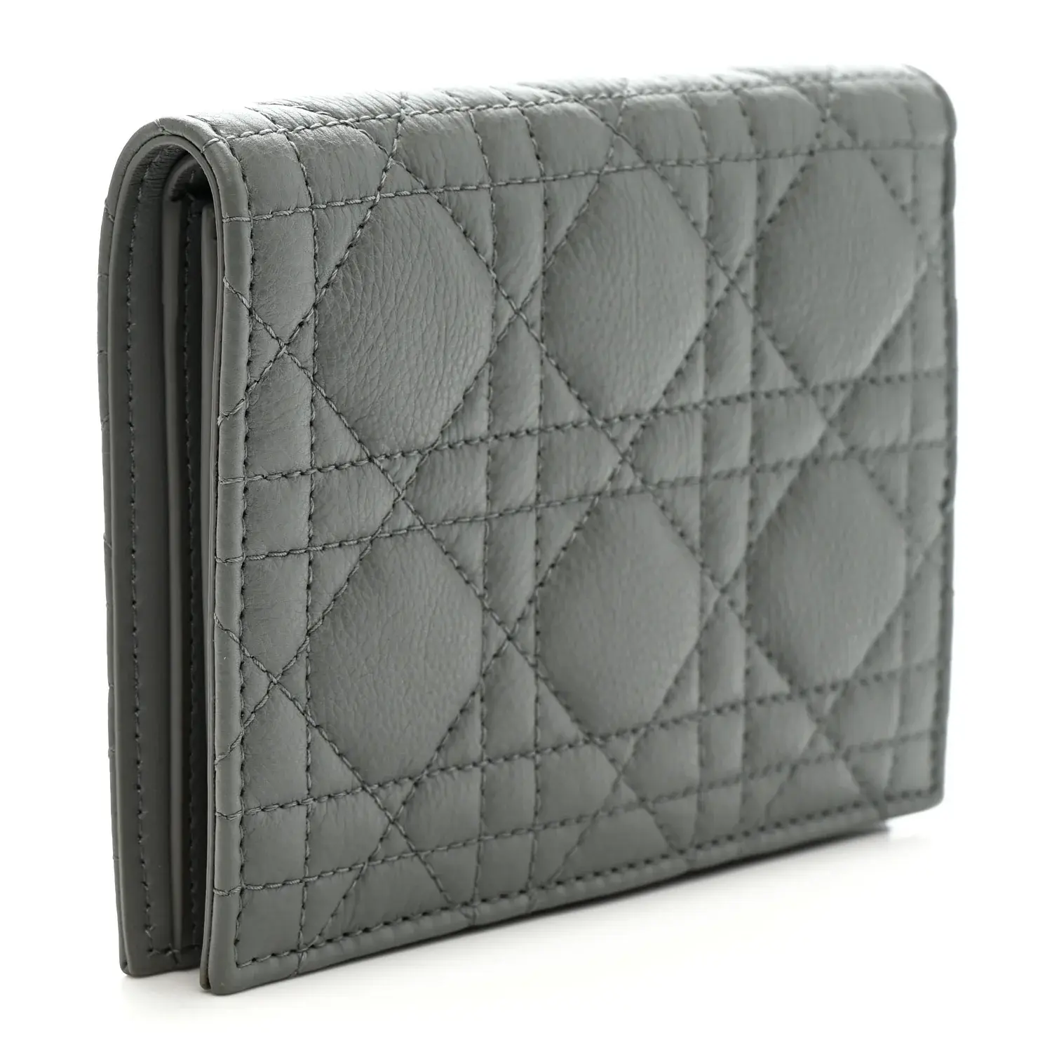 Pre-owned Dior Leather Small Leather Goods Grained Calfskin Supple Cannage Caro Medium Wallet Grey