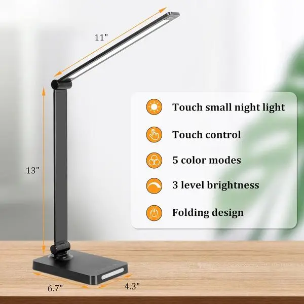 The LED desk light offers 5 light colors and 3 brightness levels. Perfect for painting, reading, writing, crafts, and nail art. Adjust brightness effortlessly with a touch. Cool white lighting is ideal for working, studying, and reading. Enhance your tasks with versatile lighting options.