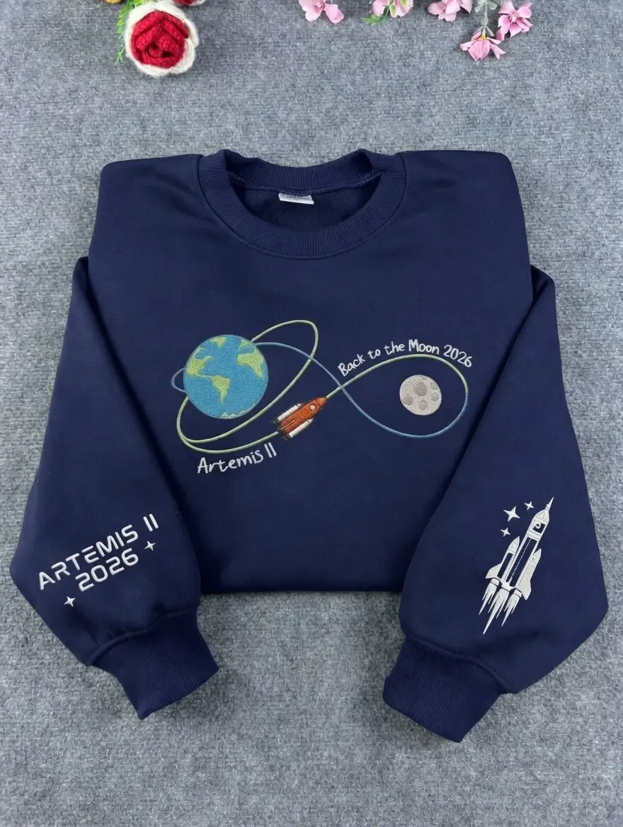 5. Embroidered Artemis II Shirt, Back To The Moon 2026 Tee, Moon Mission Sweatshirt, Launch to The Moon, Astronomy Gift, Science Lover Apparel Menswear
