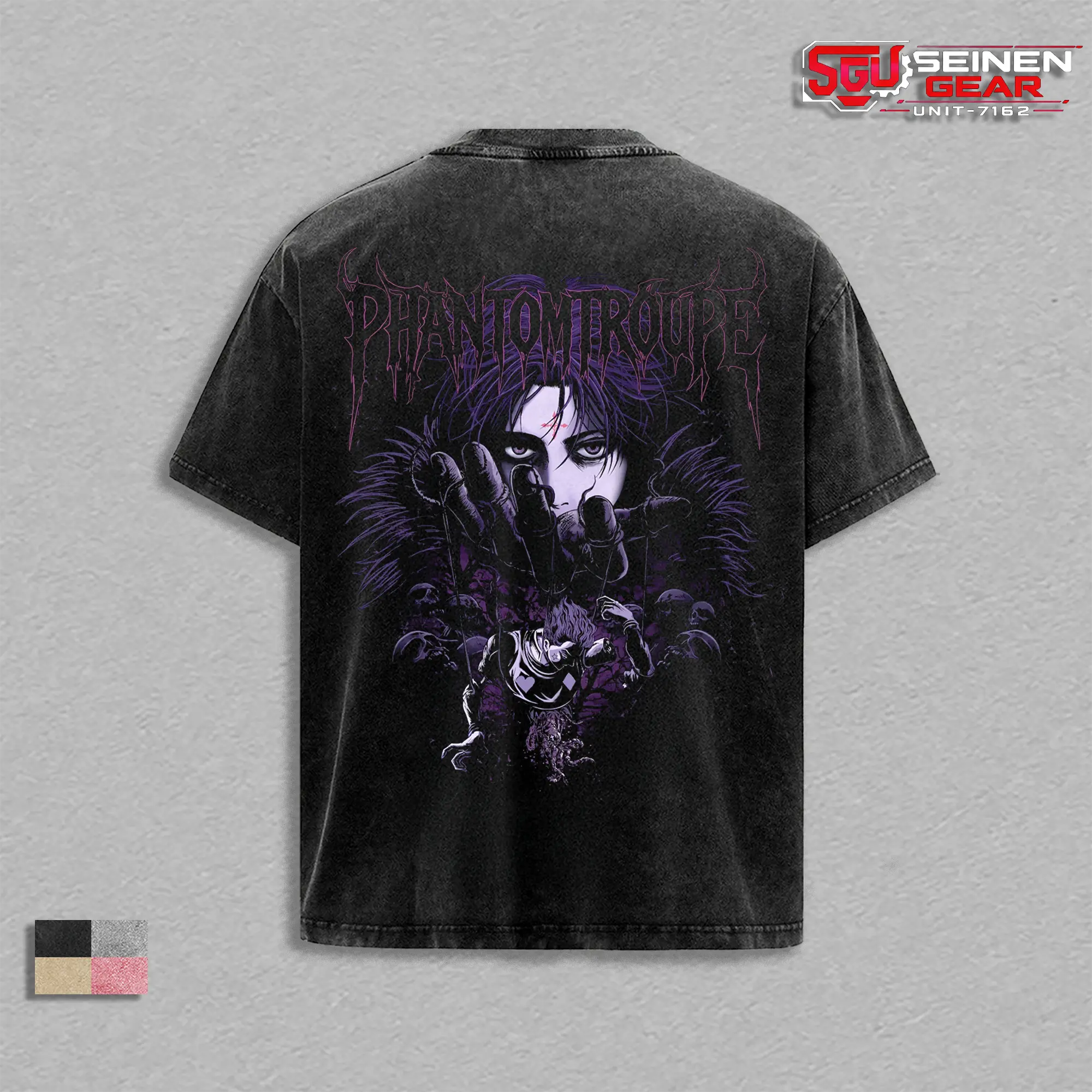 Chrollo Lucilfer Phantom Troupe Leader Back Print Vintage Washed Oversized T-Shirt, Hunter x Hunter Anime Streetwear Graphic Tee, Heavyweight Cotton Men’s Clothing Gift for Him Summer Outfit