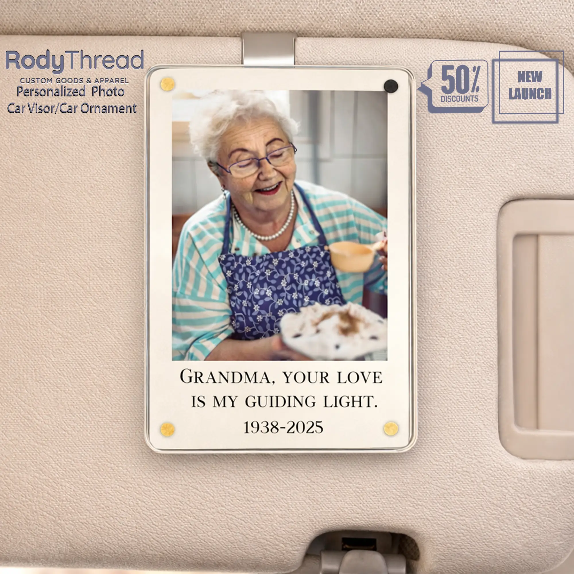 [Flash Deals] Rodythread Personalized Photo Car Visor Clip, Mother's Day Gift For Grandma, Custom Memorial Plaque, Drive Safe Sentimental Decor, Picture Car Accessory.