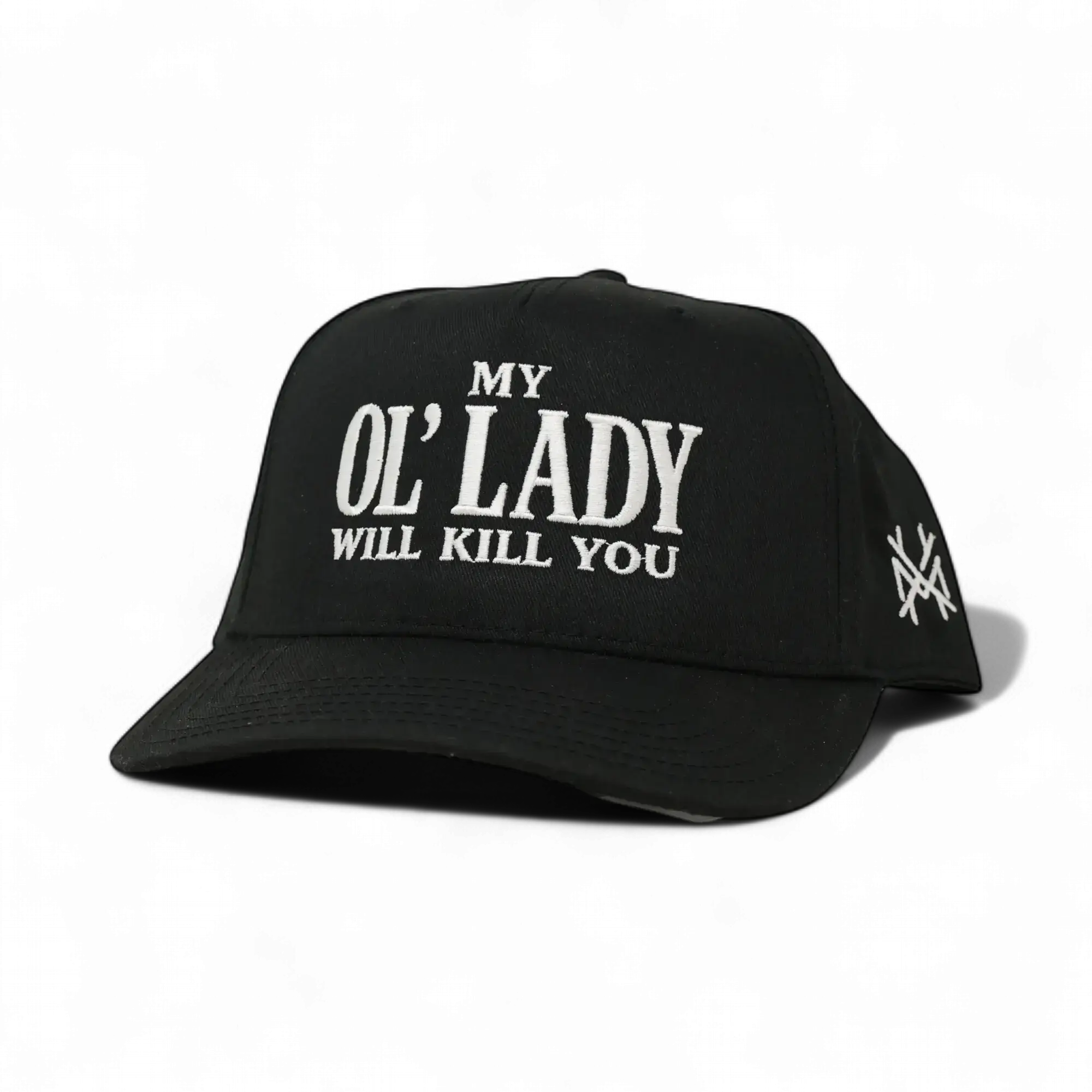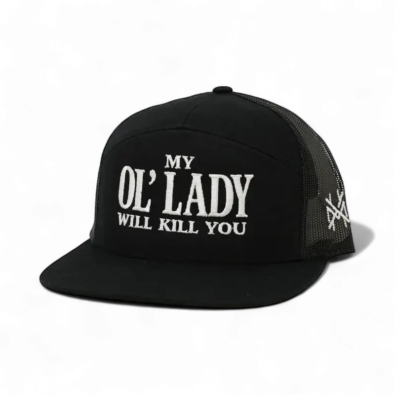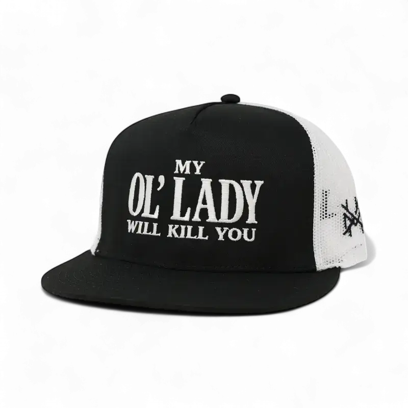 5. My Ol Lady Will Kill You Embroidered Trucker Hat Bold Graphic Adjustable Snapback