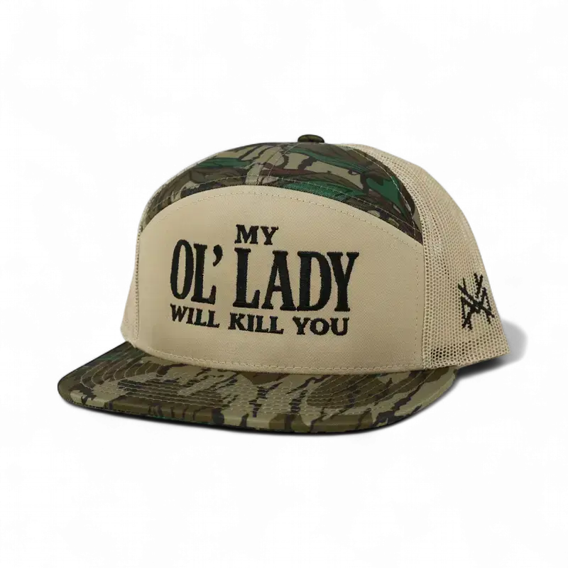 My Ol Lady Will Kill You Embroidered Trucker Hat Bold Graphic Adjustable Snapback