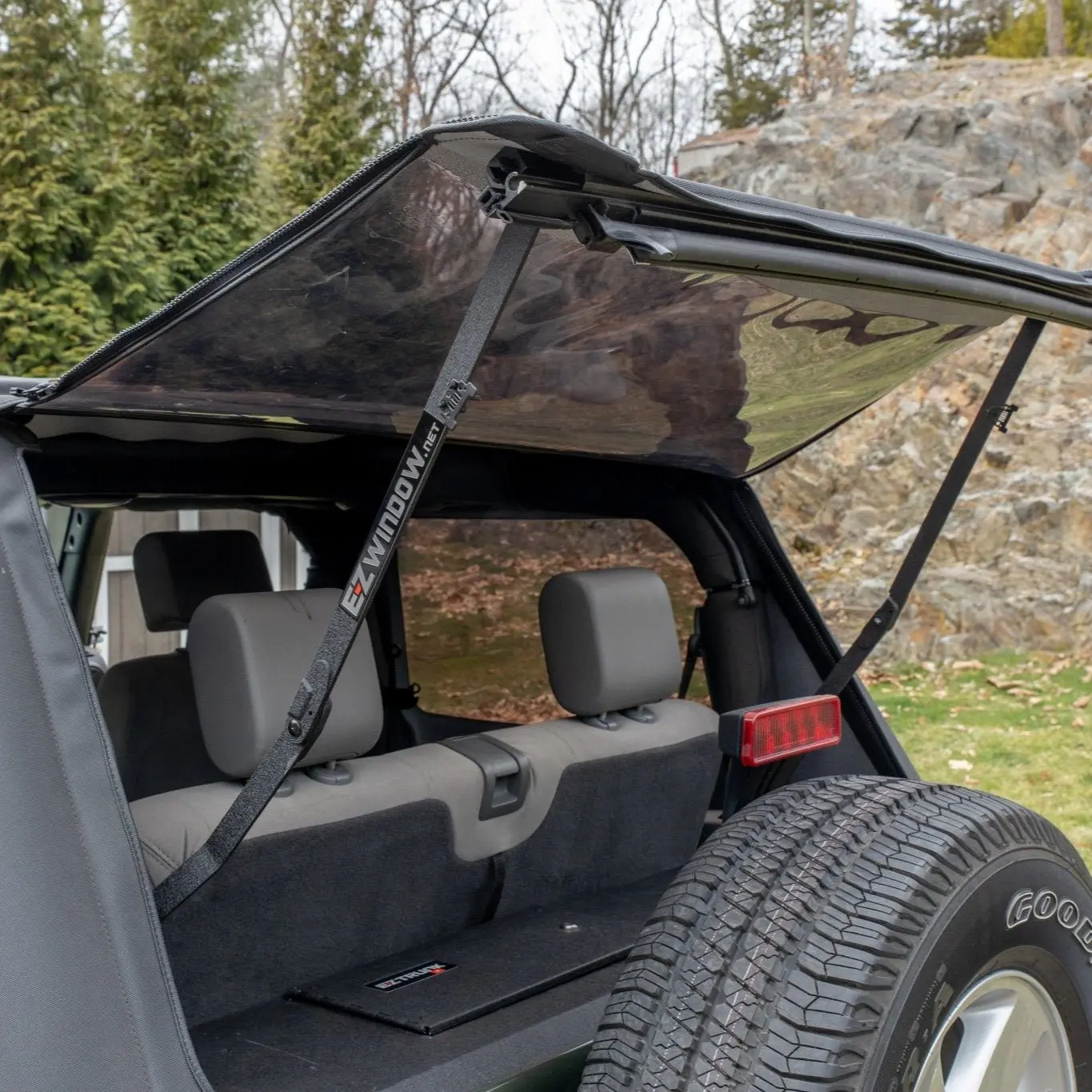 Unlock seamless trunk access with EZWindow: No more ducking or struggling with your soft top back window—simply pull to open and collapse to close for effortless operation.