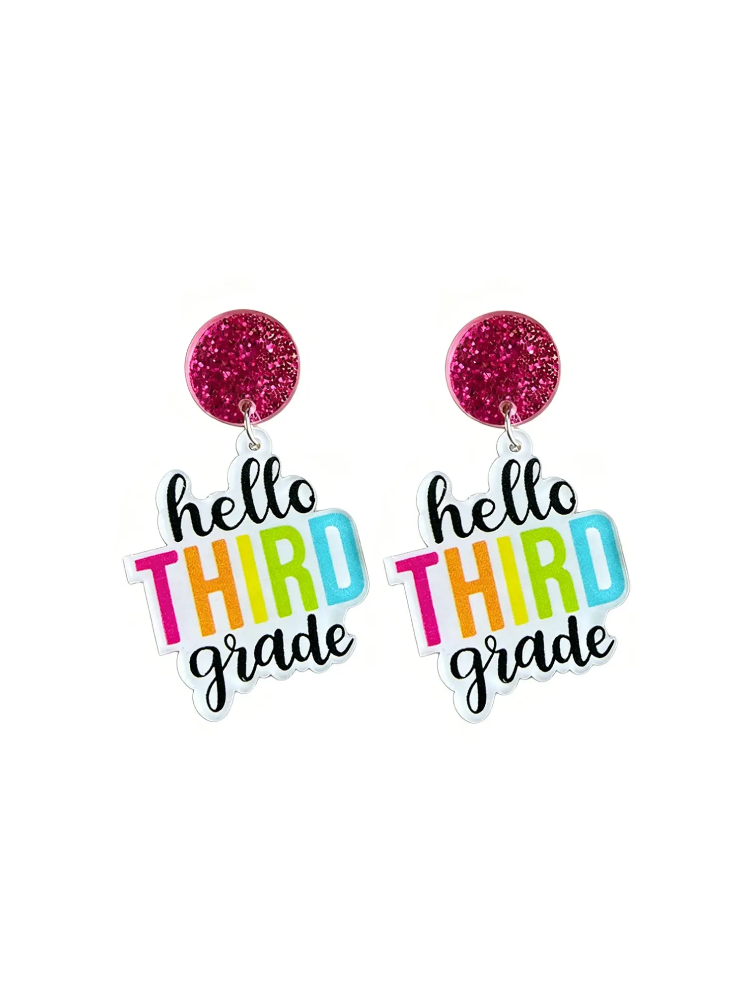 European and American Style Teacher Drop Earrings, Colorful Simple Text Sparkling Student Ear Rings, All Seasons Preppy Fashion Jewelry