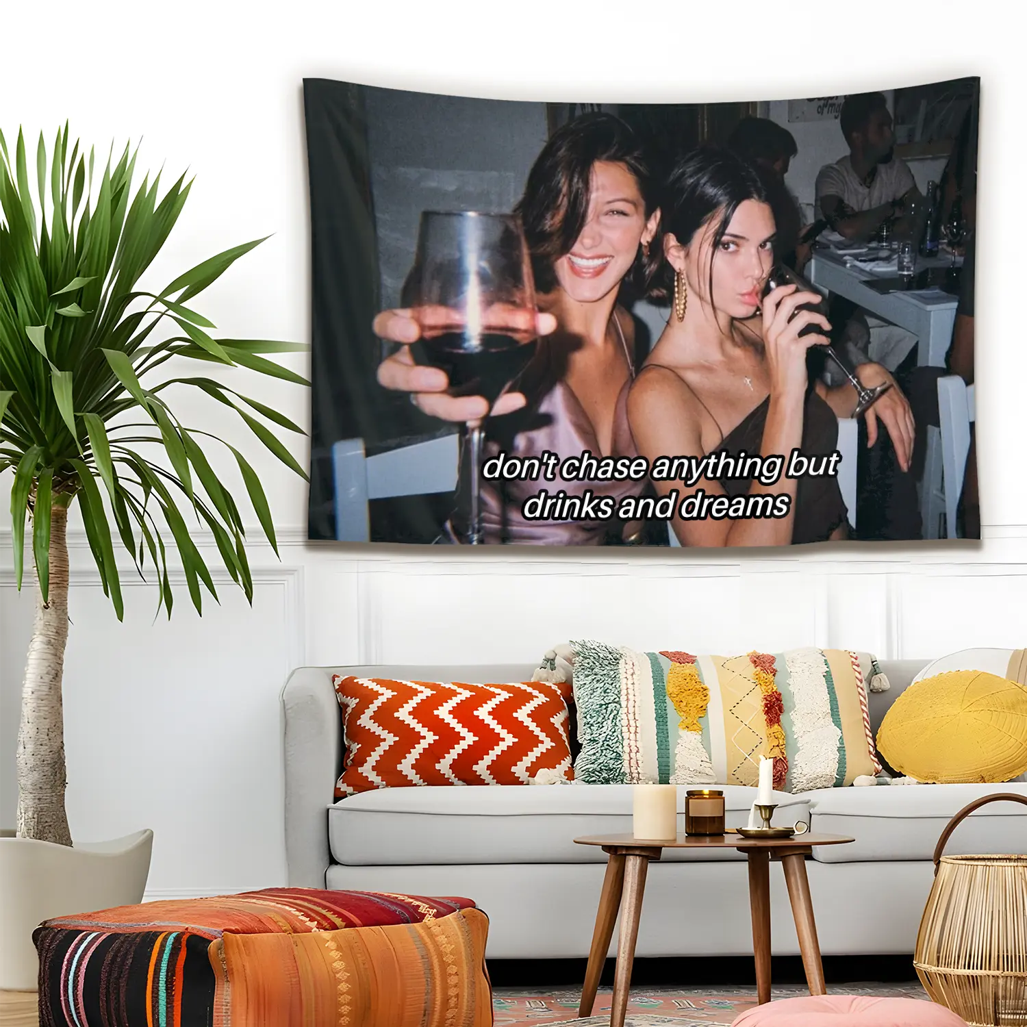 Bella Hadid and Kendall Jenner Tapestry, Fashion Model Aesthetic Wall Hanging Decor, Celebrity Vintage Art Banner, Bedroom Wall Art, Gift for Fans
