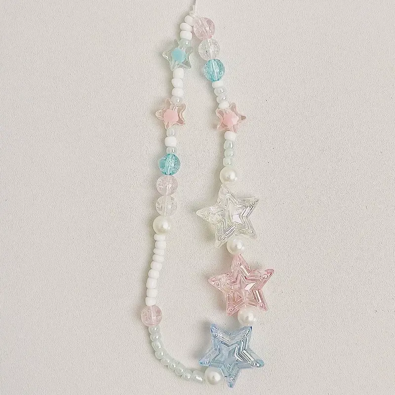 Pink And Blue Shiny Star Phone Strap Phone Charm Shimmery Spring Summer Phone Accessories Beaded Charms Phone Kindle Strap