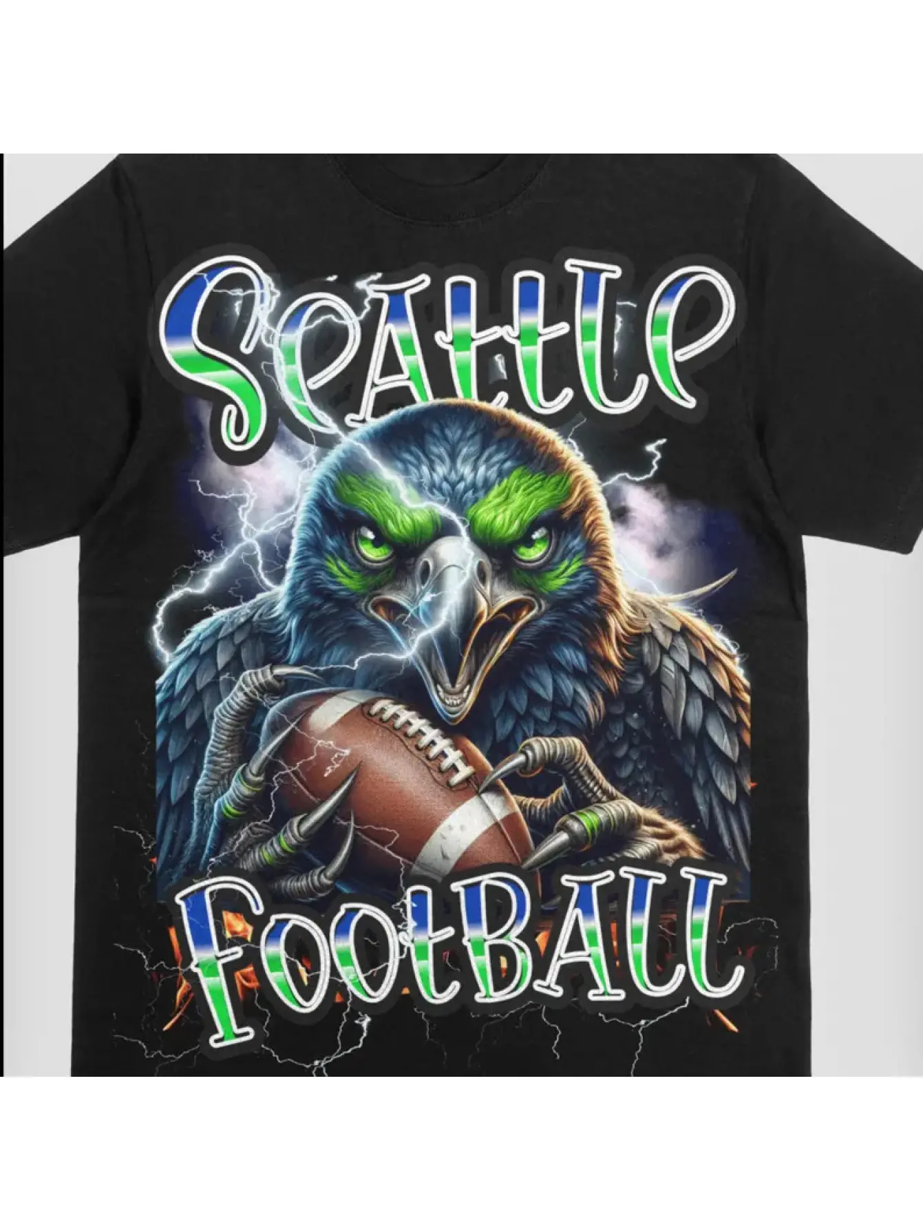 Seattle Football Team Spirit Png Logo Clip Art-Iconic Mascot Badge with Logo Print Casual Round Neck Four Seasons Fan Clothing Machine Wash Mascot Design Fit for Match Day Wear Local Warehouse Delivery Men's Pattern T-Shirts Men's Christian Theme Shirts R