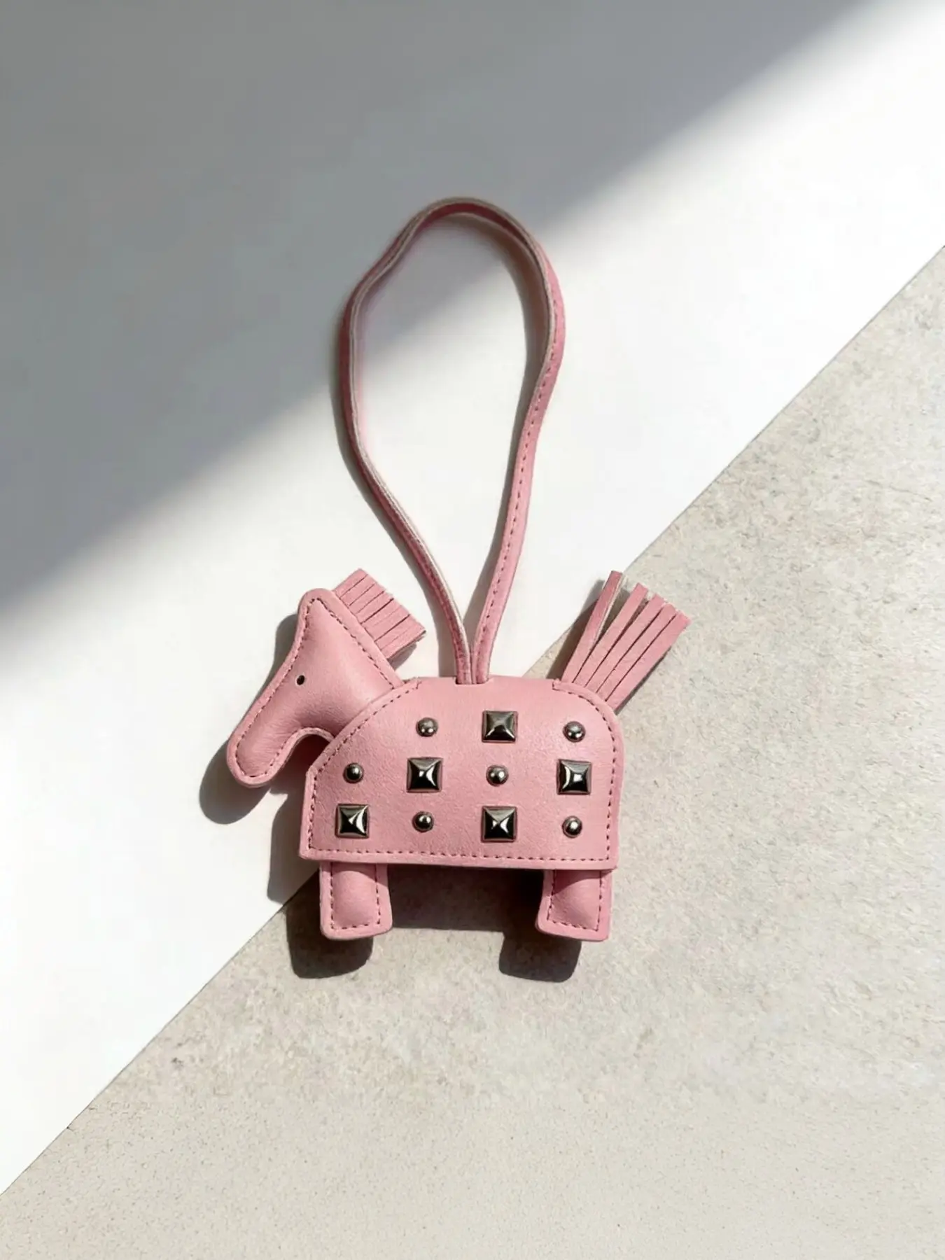 Double-Sided Stud Horse Bag Charm, Leather Handmade Warhorse Keychain Pendant, Creative Car Key Ring, Box Bag Accessory