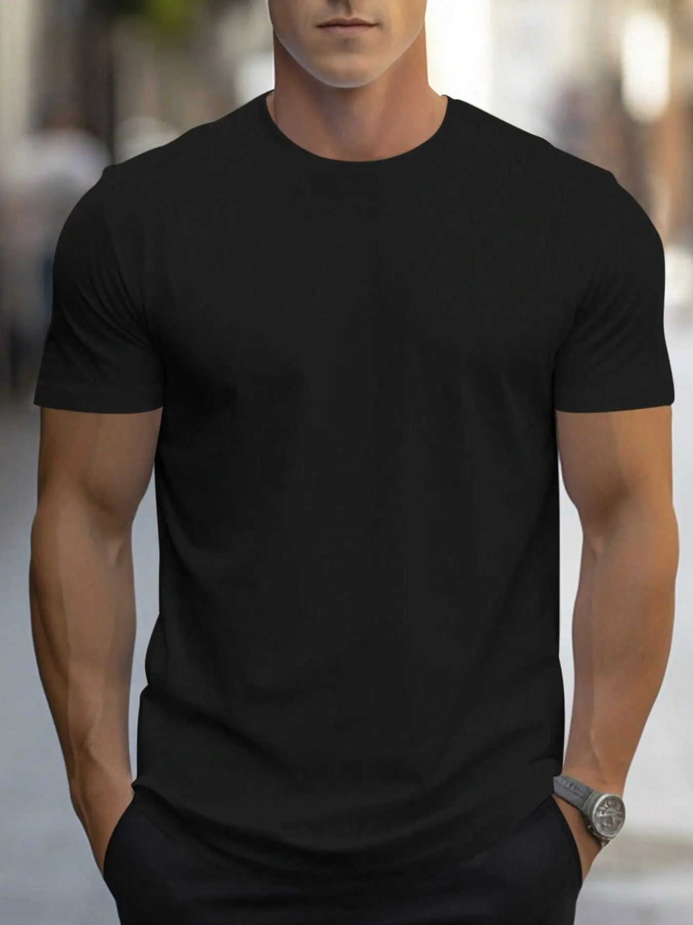 Men's Black Textured Oversized Short-Sleeve T-Shirt for Minimalist Casual Style