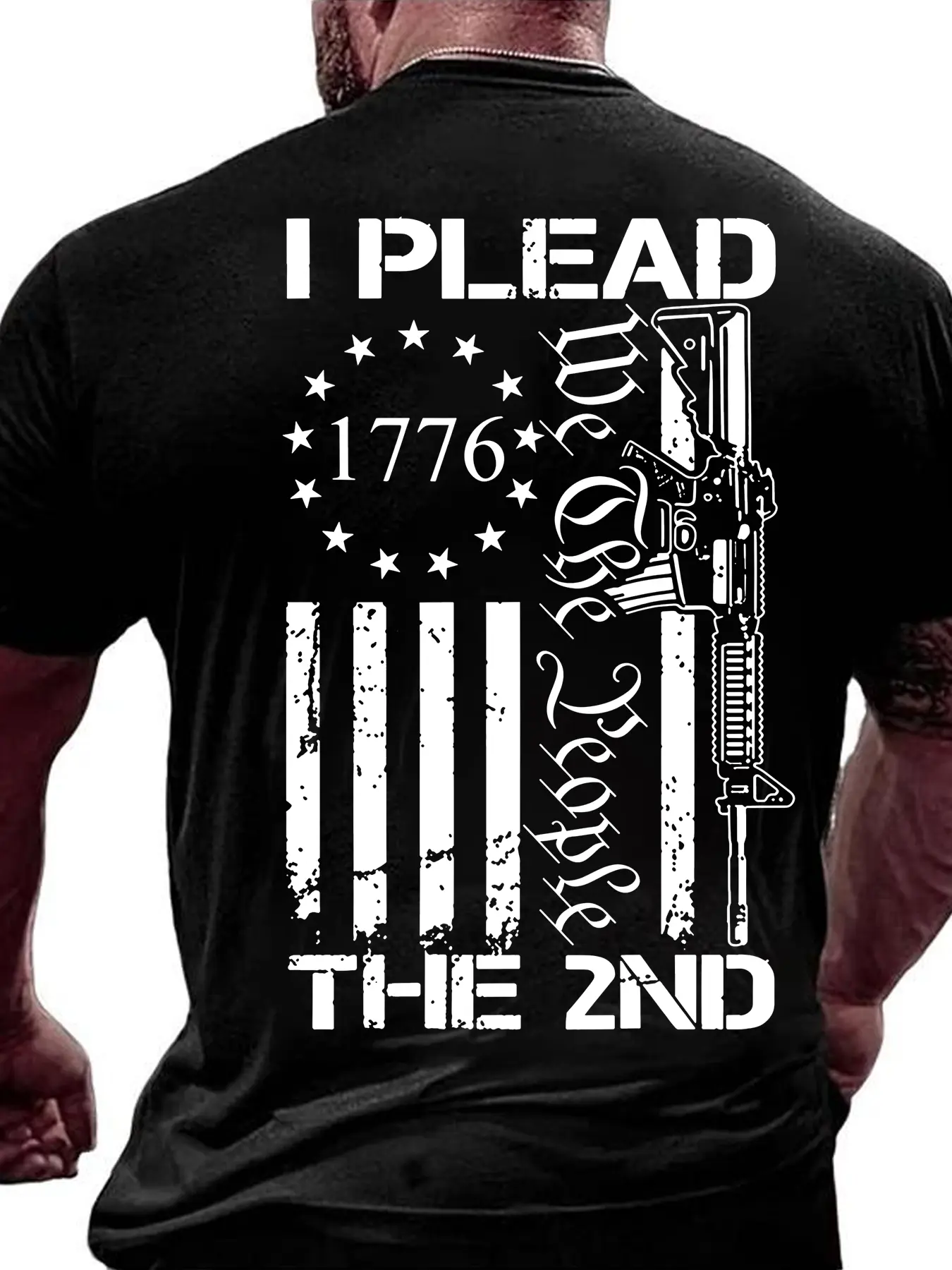 American 1776 Freedom Print Tactical Cotton T-Shirt, 2nd Amendment Theme, Casual Loose Fit Short Sleeve, Trendy Top