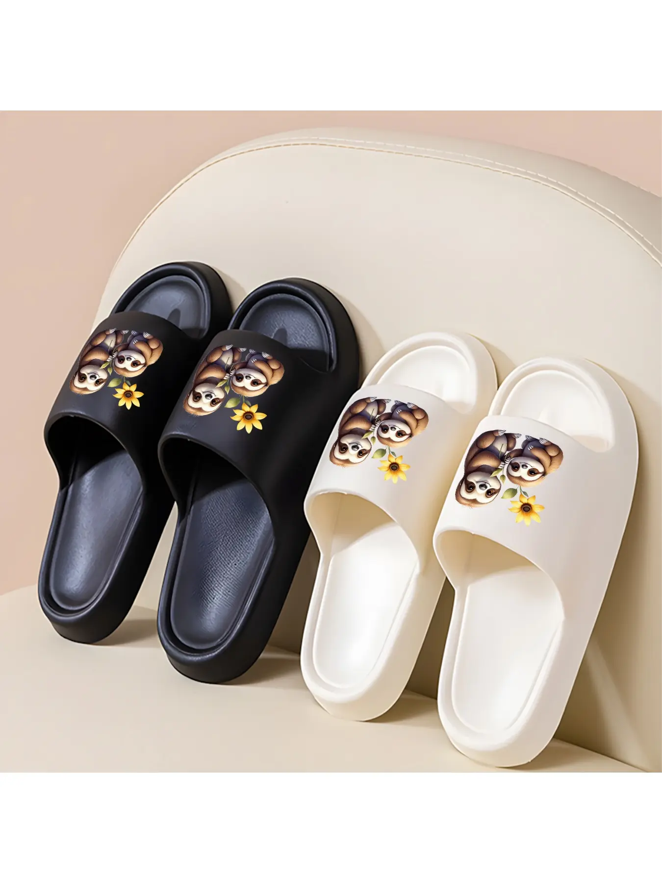 Cute Sloth Parent-child Printed Slippers, Soft-soled Slippers for Indoor and Outdoor Wear, Comfortable and Non-slip Slippers in Same Style for Adults and Children, Cute Animal Pattern Slippers Suit